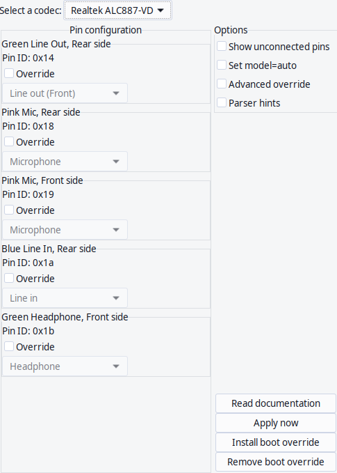 Notice the audio.position = “AUX0,AUX1,AUX2,AUX3” which normally would be setup as a 4.0 channel surround with AUX2/3 as rear channels. This in my case isnt desirable as those arent rear channels but L/R on my line level outputs.