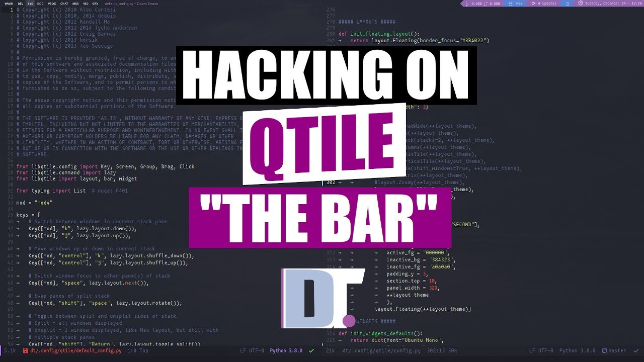 I just discovered this thread after 2 weeks of making a try at i3 where I have to jump through all kinds of hoops in the config file just to have standard Vim keys. Being totally unaware of this discussion, I went through most of DT’s videos about Qtile thinking that this might work better for me than i3.