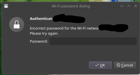 I’ve tried disabling powersave, I’ve tried disabling KWallet, I’ve tried reenabling KWallet, I’ve had my Wi-Fi password saved across all users and just myself (doesn’t matter because I’m the only one who uses this computer), I’ve tried restarting my router several times