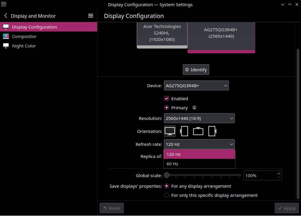 Edit: Also what refresh rates are shown in KDE under settings for the display?