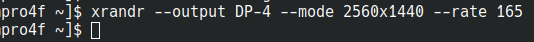 xrandr --output HDMI-0 --mode 2560x1440 --rate 144 --primary --output DP-4 --mode 2560x1440 --rate 165 --right-of HDMI-0