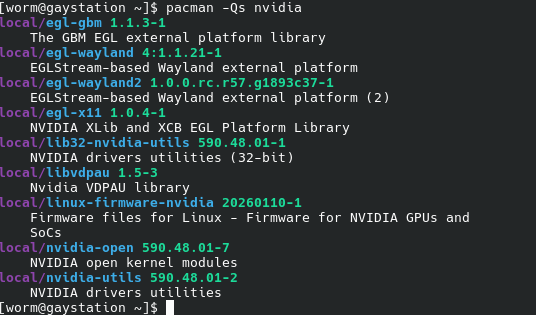 pacman -Qs nvidia