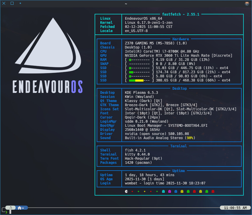 sorting colours out on my Endeavouros arm test device.