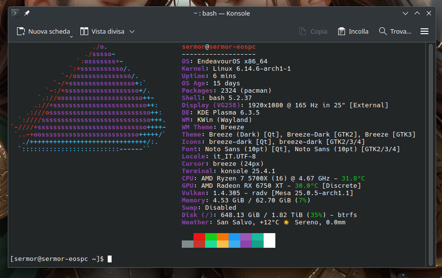 Scusa amico, I was so occupied with wttr format codes & fastfetch module construct I forgot to wrap curl -s 'blabla' inside echo $(), so curl gets the response from the server & says … nothing ![]()