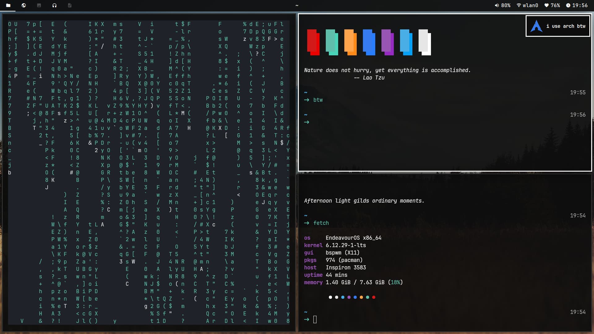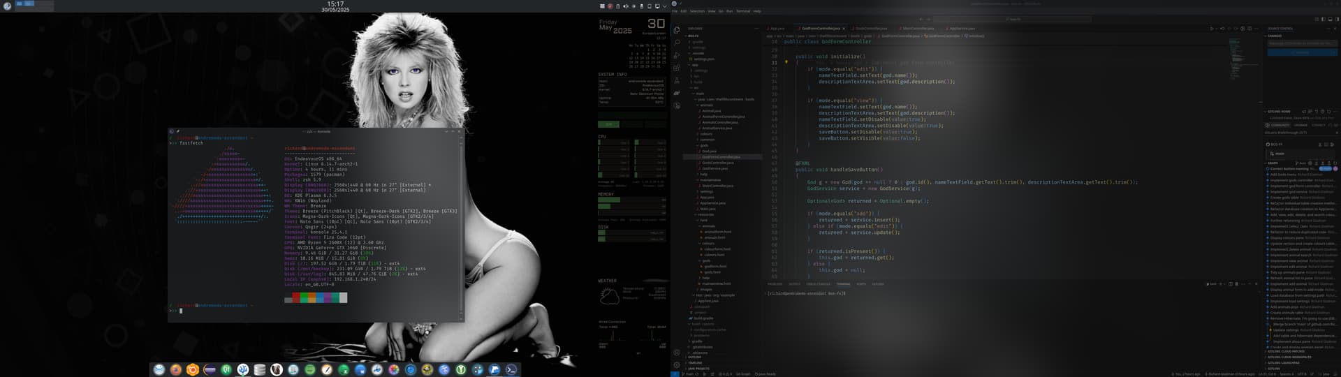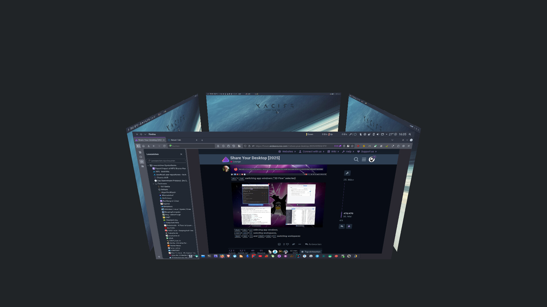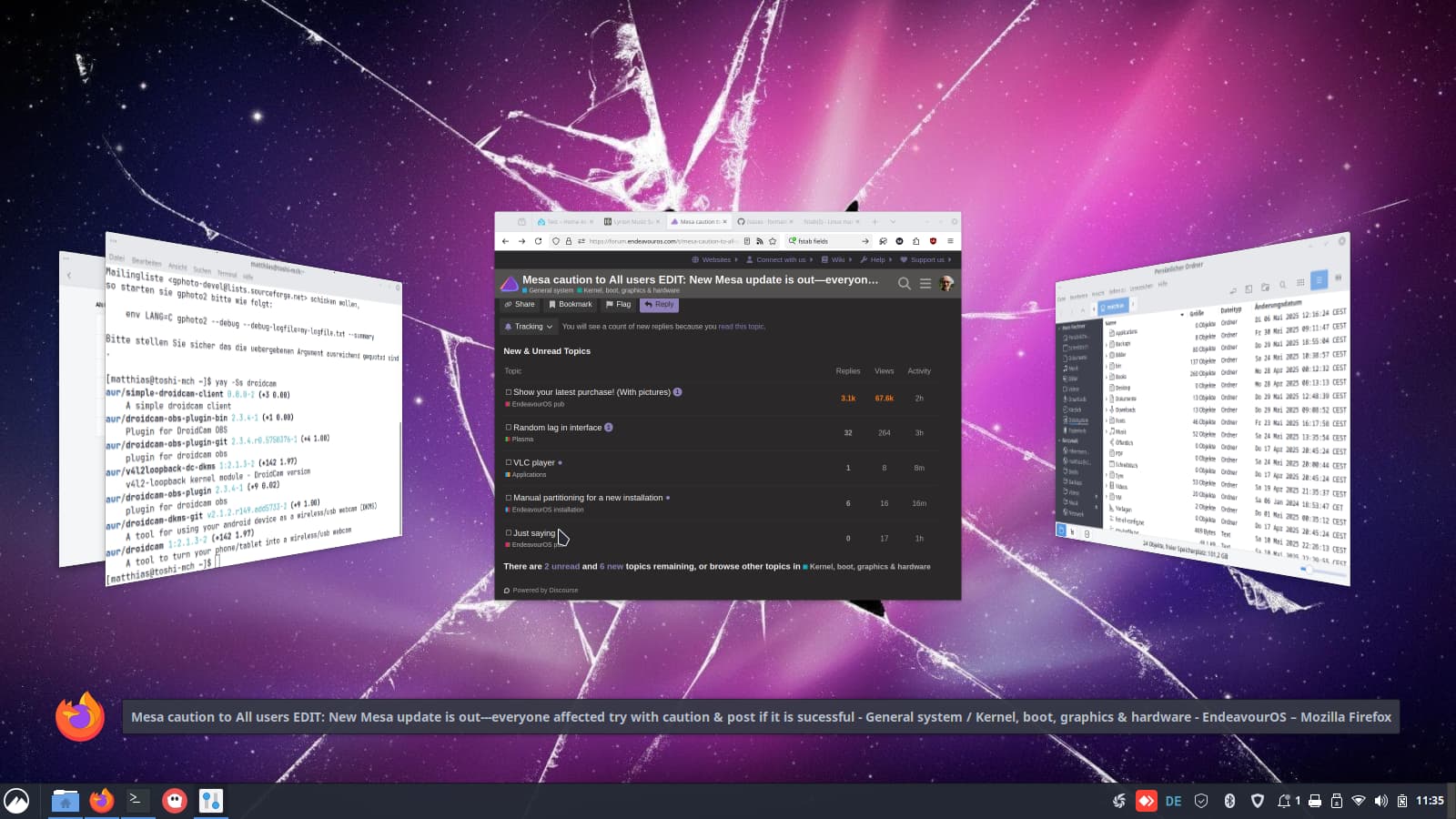 I recntly switched to Endeavour from windows after [many] broken Arch installs. So far I am really enjoying it and wanted to share my first rice. The background is animated using the KDE Wallpaper Engine extension and I am running the KDE Sweet theme.