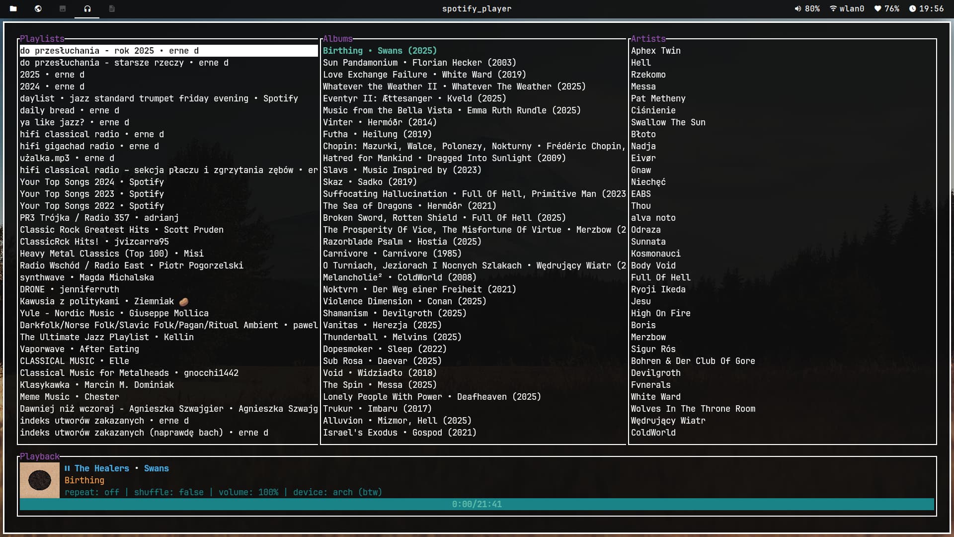 Small changes in my rice. Decided to simplify Polybar setup by getting rid of unnecessary modules and make smaller gaps. Also switched to Qutebrowser and CLI client for Spotify.