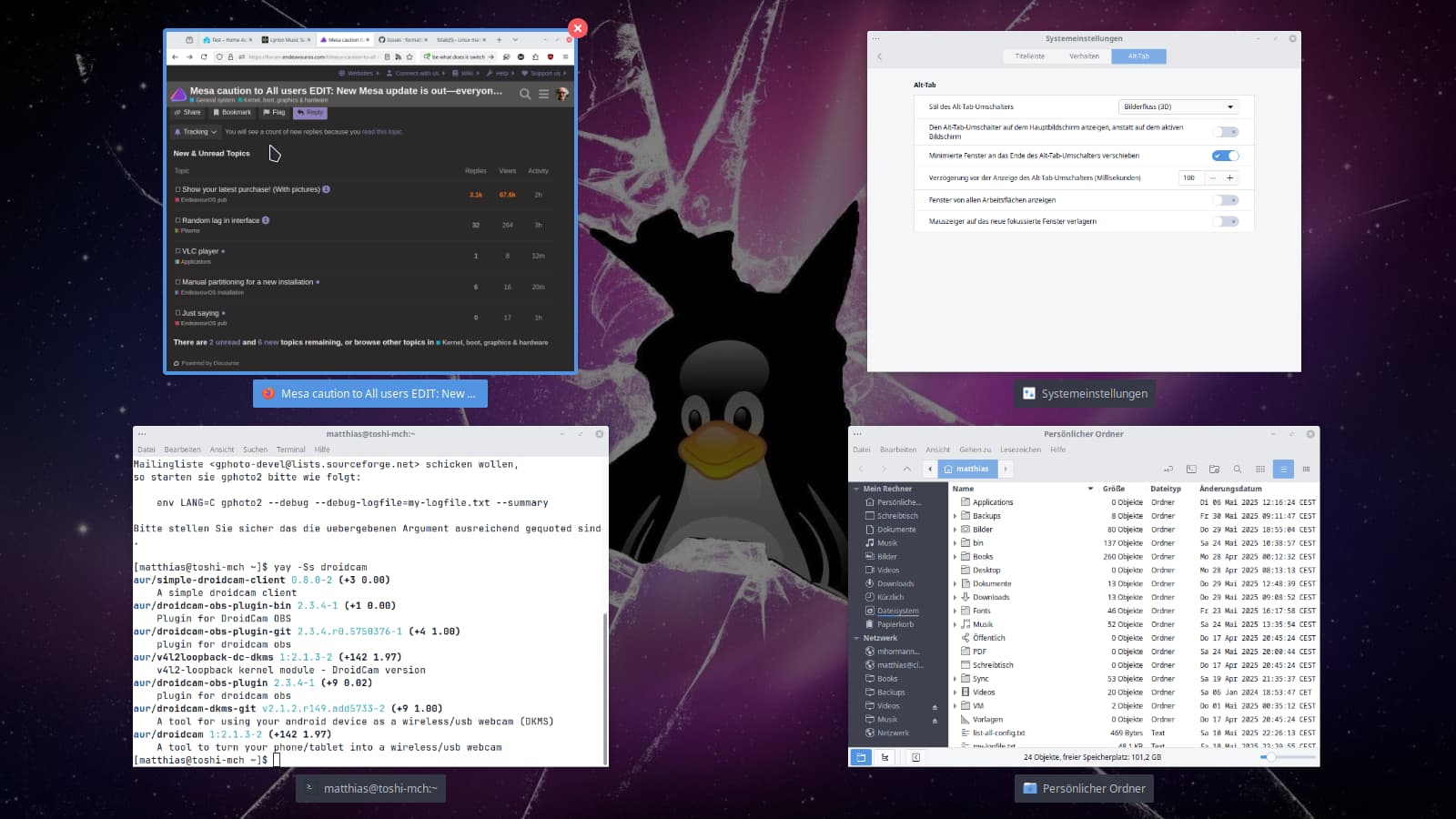 Alt+Tab switching app windows (“3D Flow” selected)