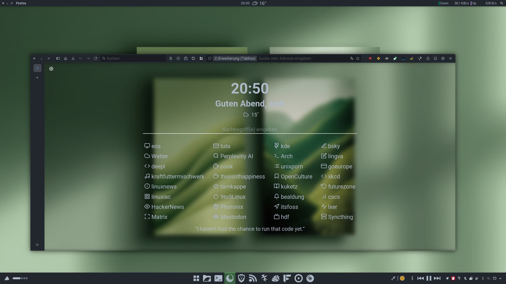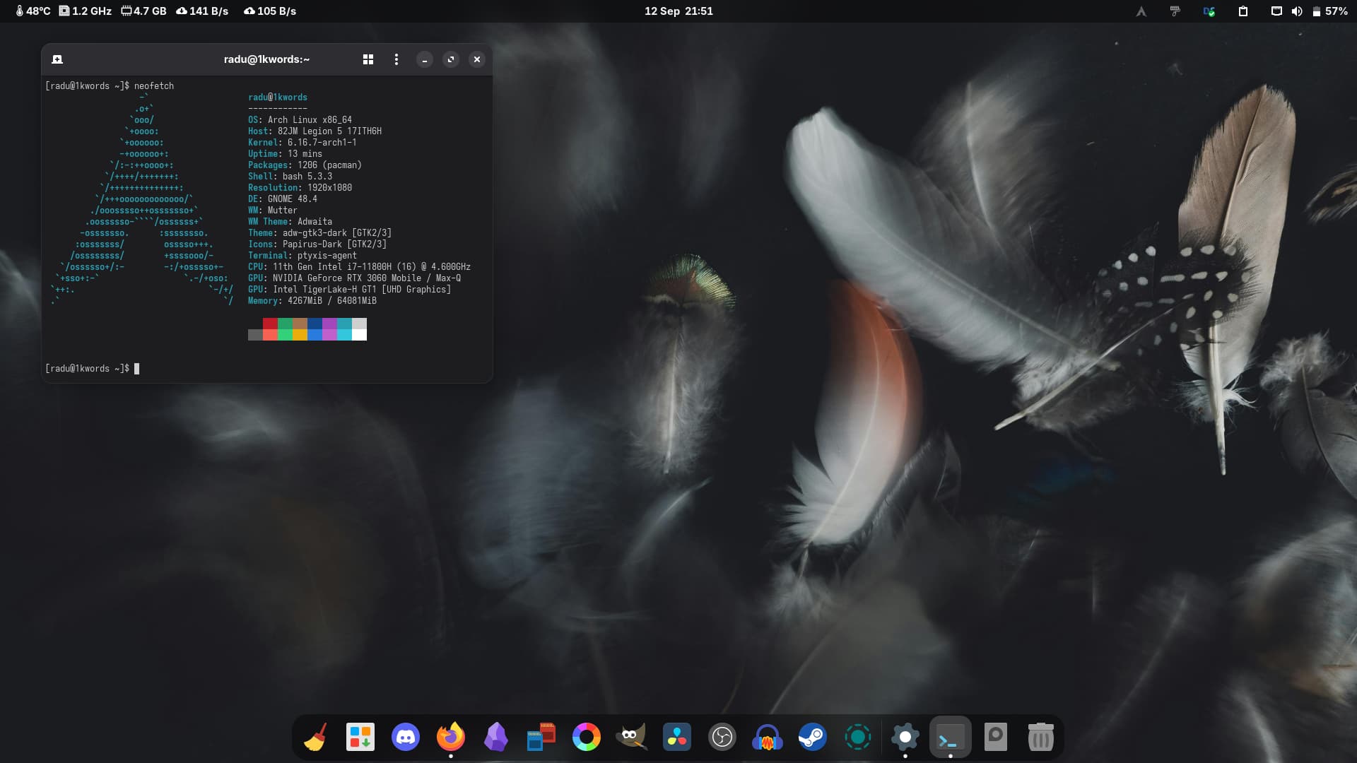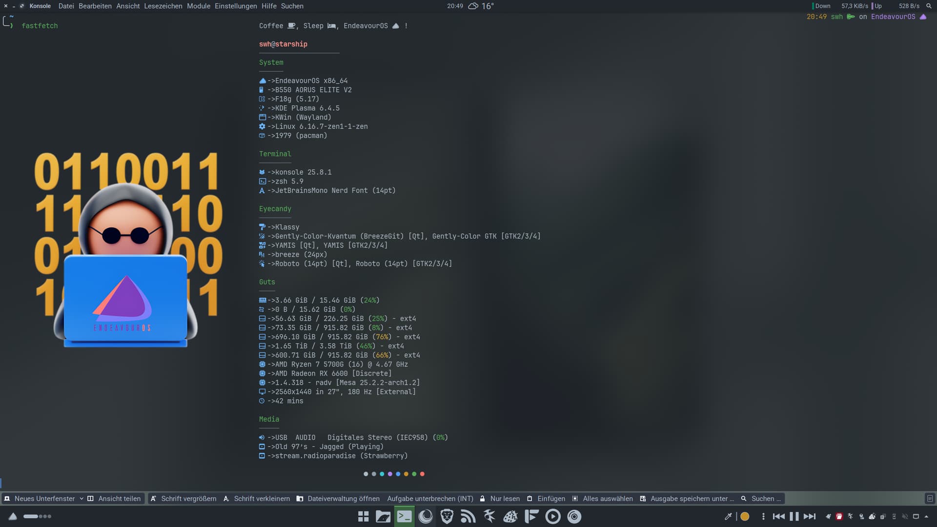 I got my old PC and installed EOS on it. The only thing different from when I used it before is the graphics card, which was an nVidia 980 Ti instead of the 1650 I use now. Sure, in terms of drivers and tweaks, it’s easier with the 1650, with X11 (I noticed it doesn’t like Wayland very much, apparently), than with the 980 Ti. I might lose a bit in graphics performance, but the important thing is that everything works well (also because the hardware is old anyway and you can’t expect much).