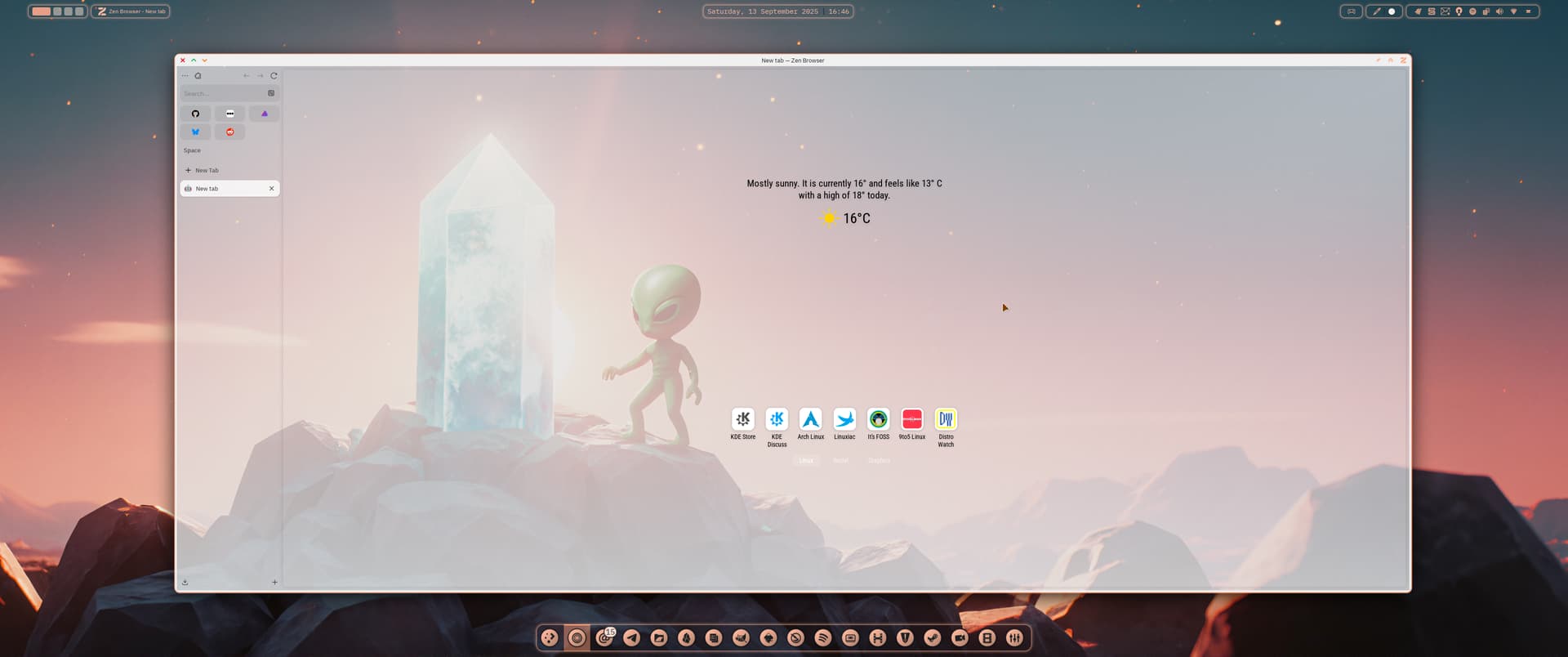 Transparency on desktop bars and Zen browser but everything else opaque… I think I prefer it. ![]()