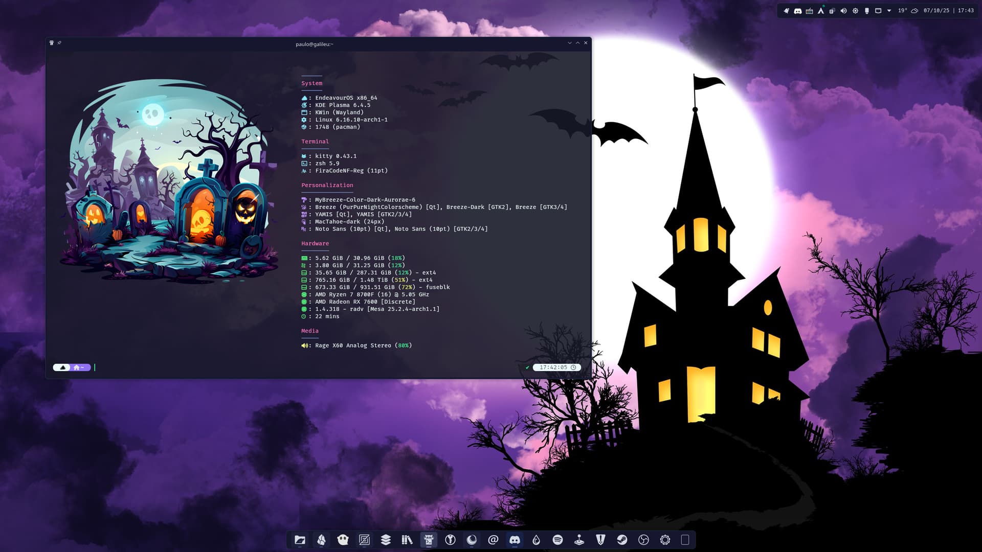 My final Catppuccin noodling before I get a Halloween desktop together.