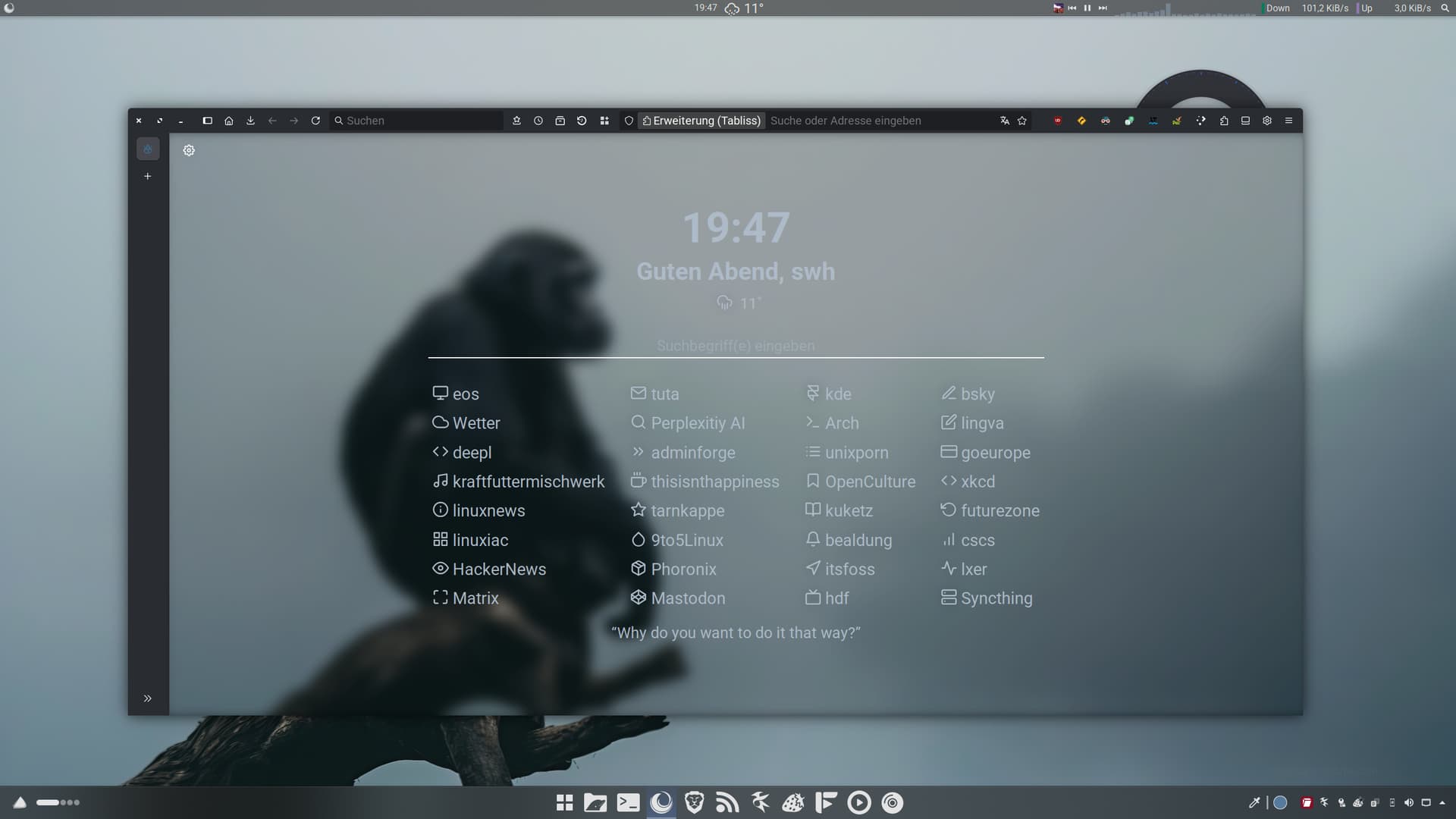 Just got EOS Plasma installed to its own partition … its amazing how well it runs on this anemic laptop. This morning trying wayland, but so far haven’t noticed much difference.