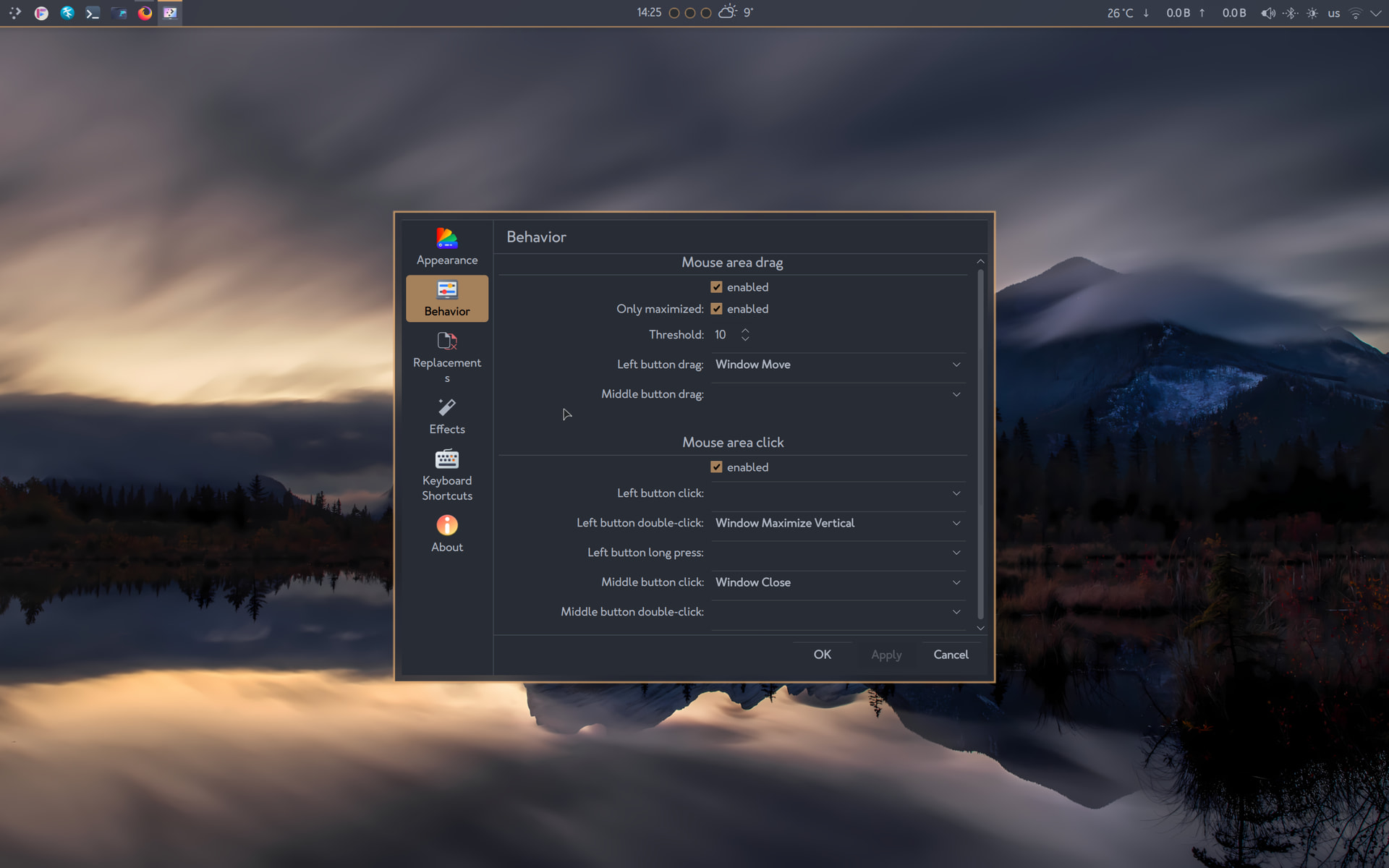 There are the defaults from kde, I made some with title bar 's widget settings.