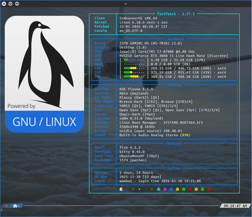 Wiped all my drives, and have gone with a single OS: Endeavour ![]()