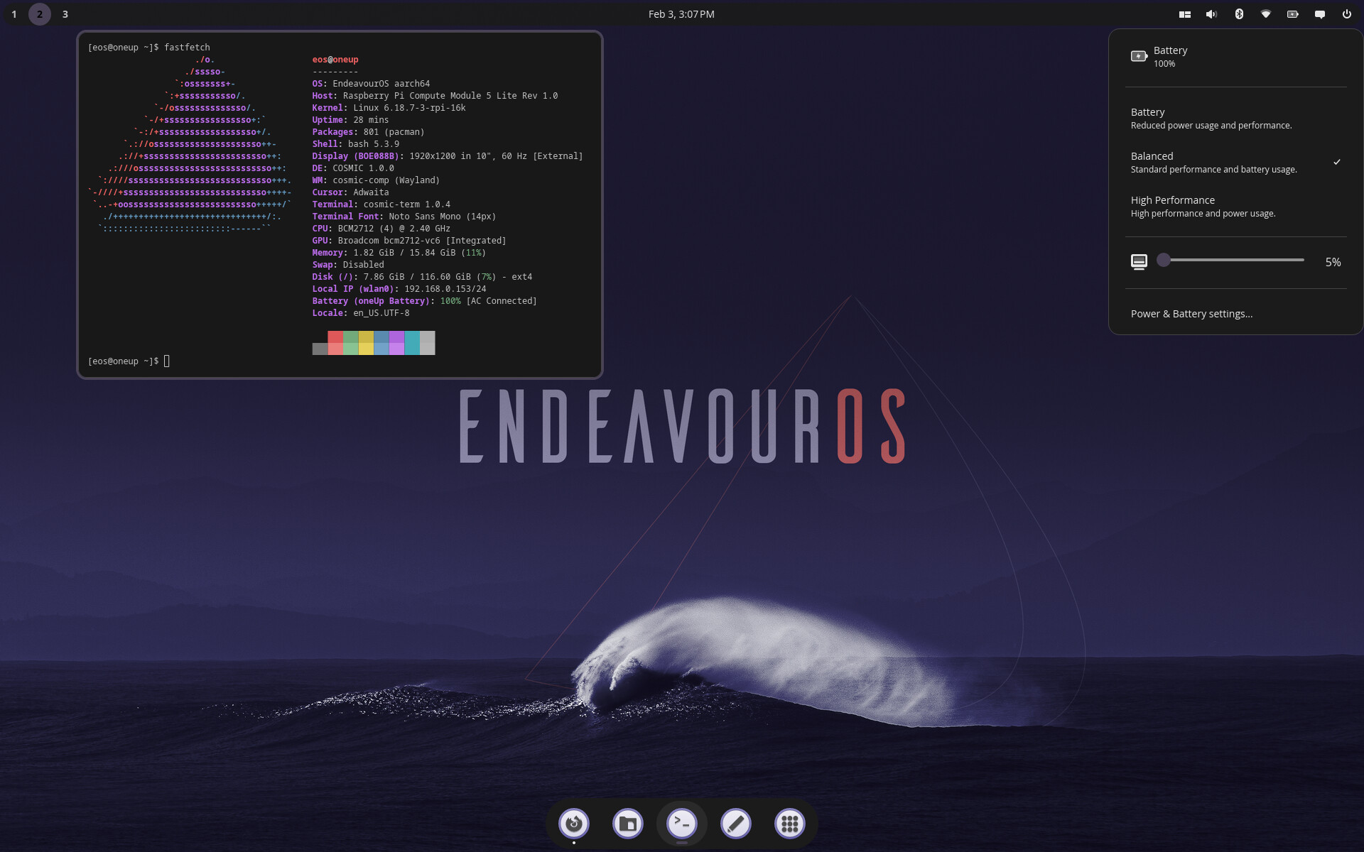 Endeavouros Cosmic on new Argon40 OneUp laptop (arm)