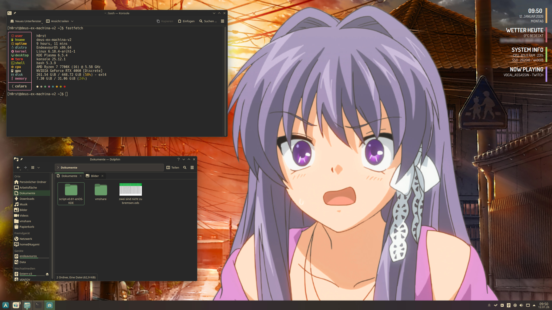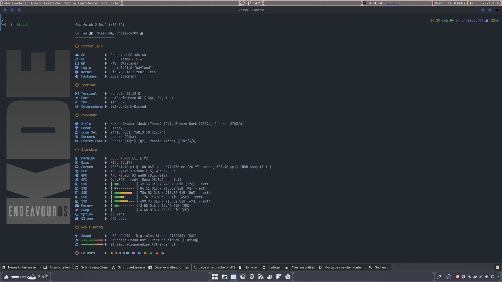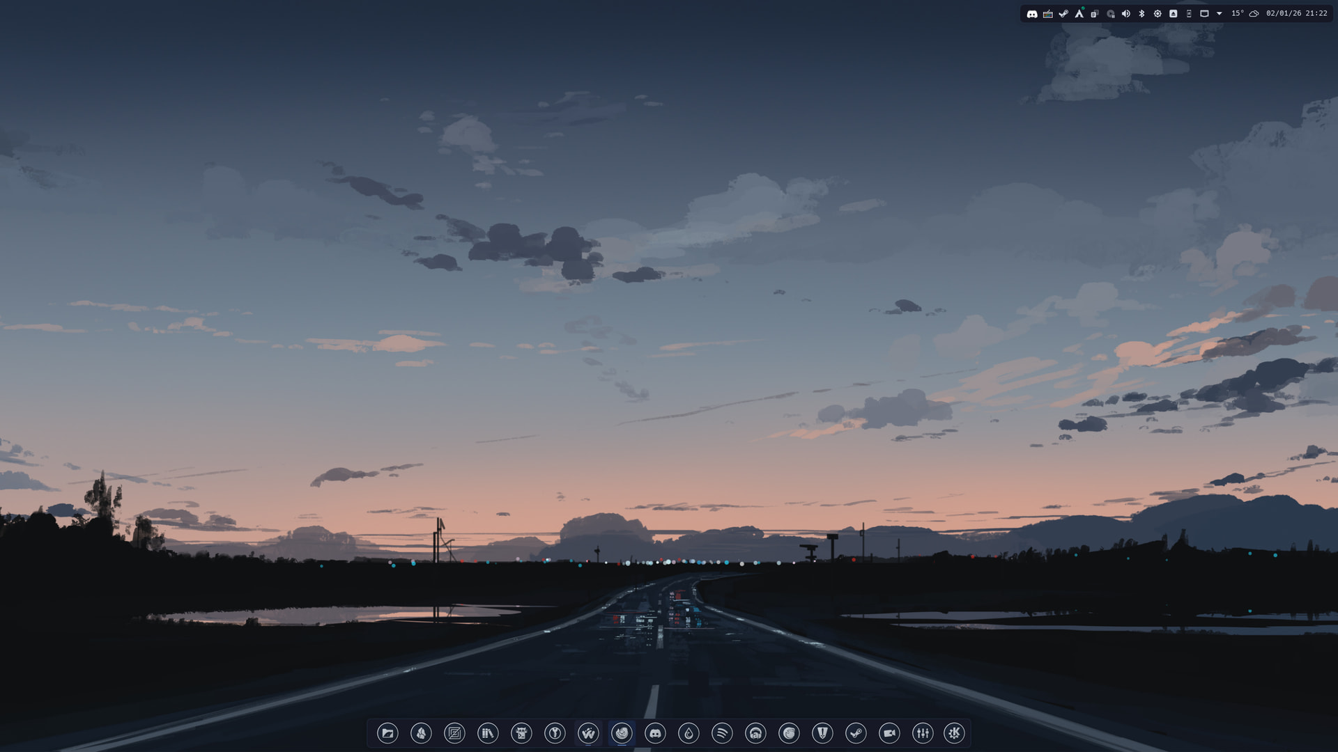 Another year with Plasma KDE. Slot Dark Icons with Breeze Dark, additional widgets / panels for app launchers and other tools. Catppuccin Mocha Flamingo custom colourscheme.