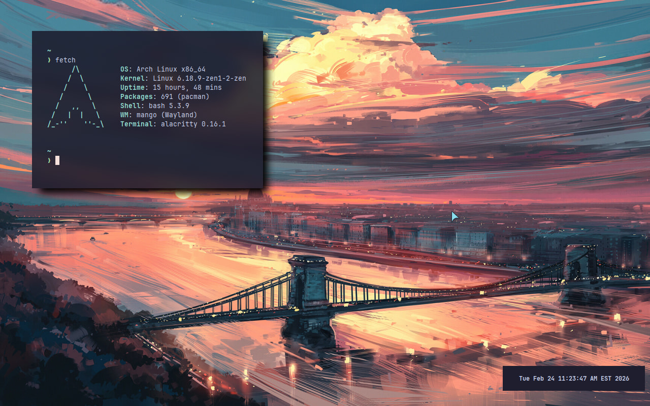 Sorry for late reply, did not notice your message. It’s just zen browser and music thingy is ignis widget I made.