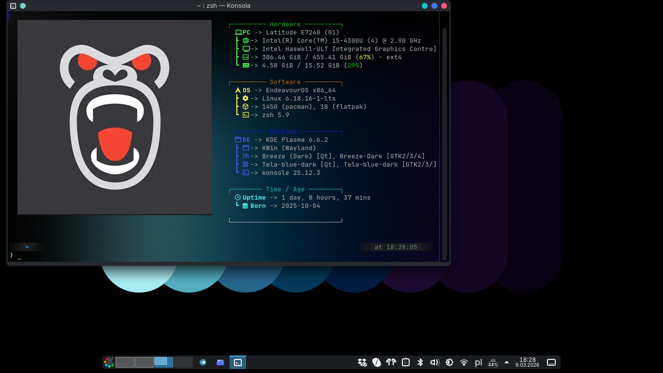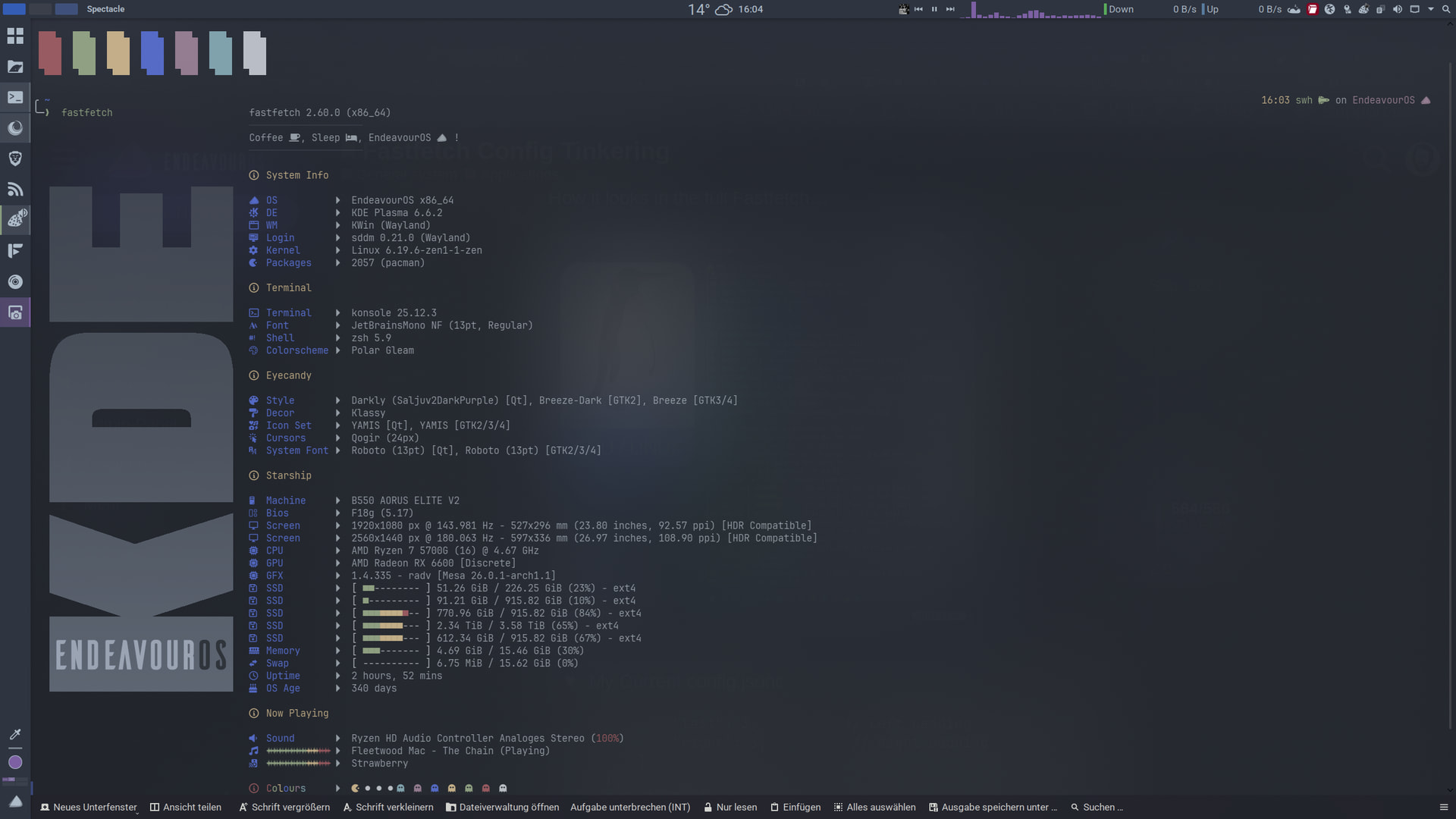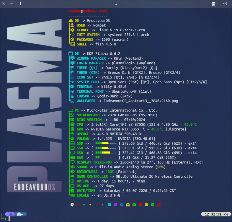 Tweaked the colors, Klassy/Darkly tweaks, new Fastsetch image, and new wallpaper.