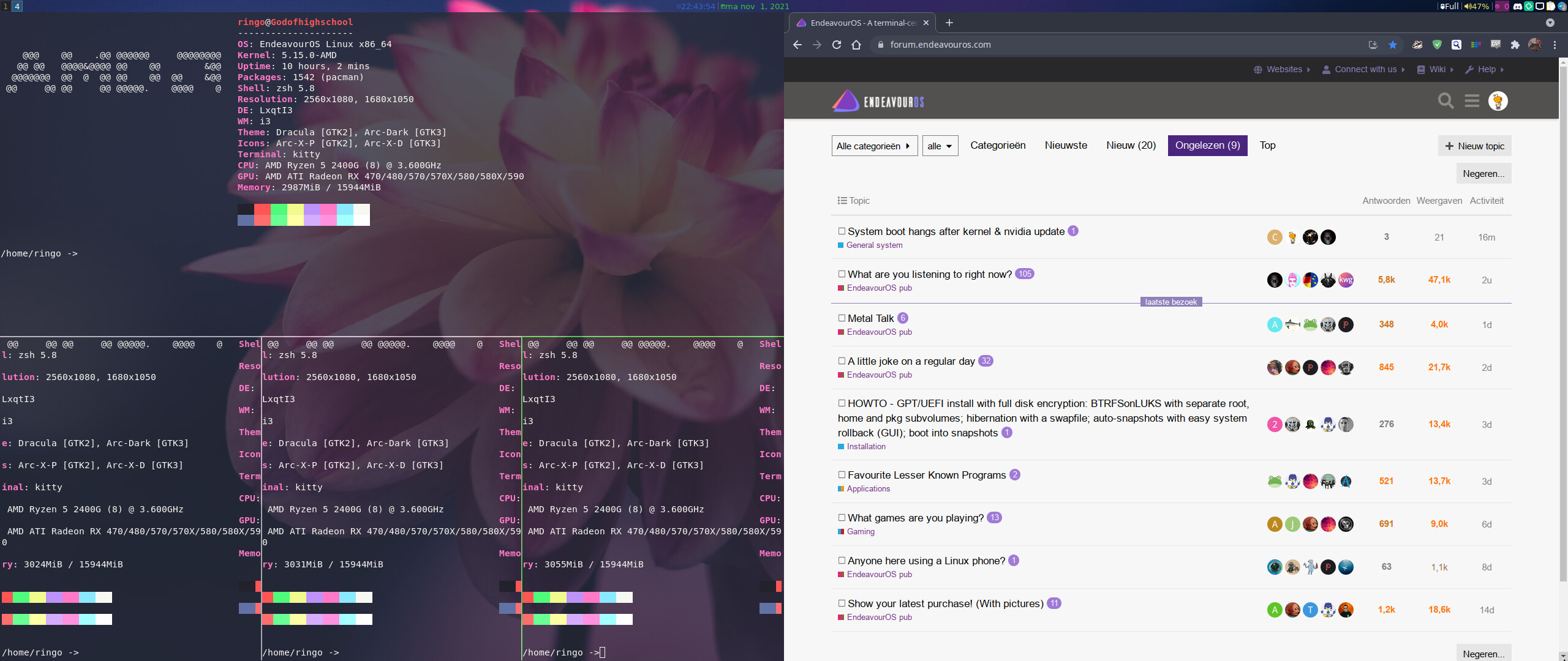 Greetings from Finland here on my Arch - linux - EndeavourOS KDE5 Plasma 5.23.2 desktop and a few software that I use almost every day.