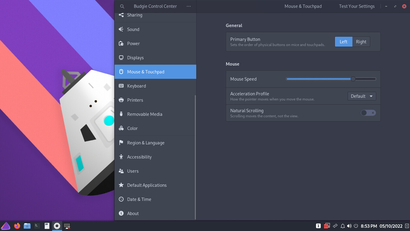 Notice the new Budgie Control Center