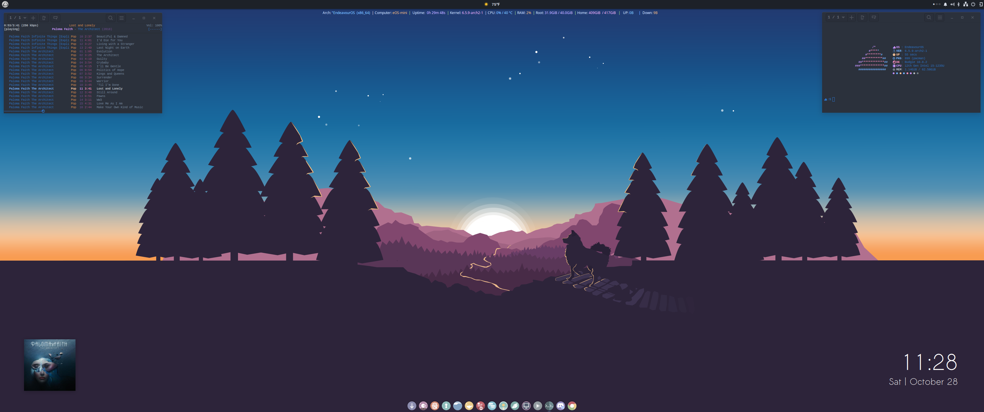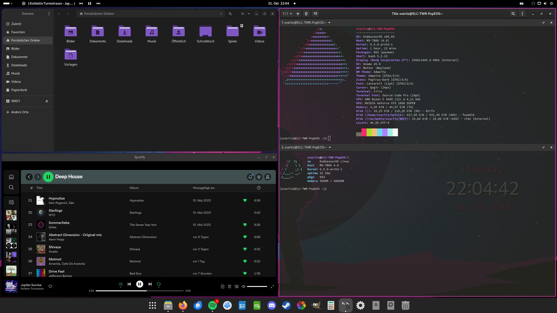 After a short lasting journey into tumbleweed and the learning that Arch/EOS is what Iβm used to and what I like the most, I switched back to EOS and configured a Gnome/Pop! Shell DE.