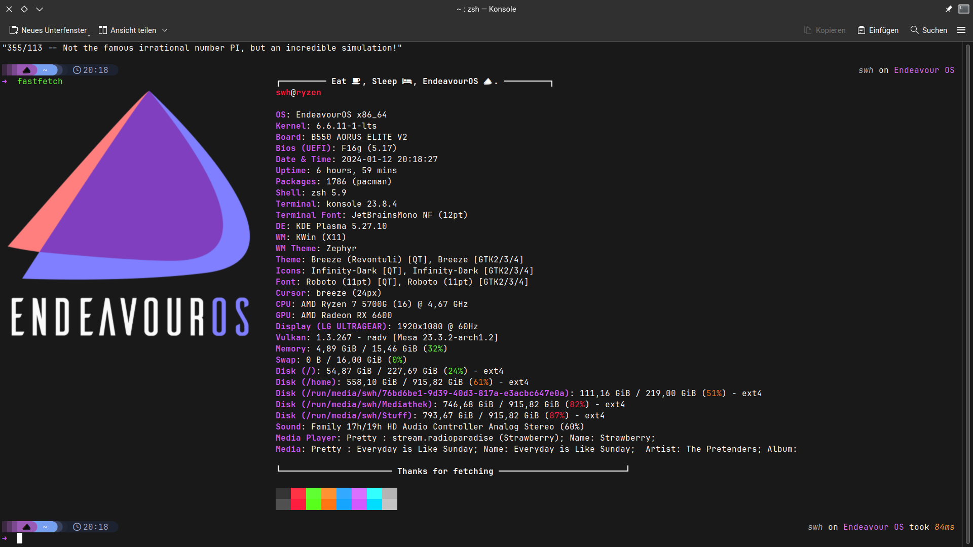 So I set up a very simple plasma desktop. Just Breeze, Revontuli colorscheme, Infinity Icons and autohide panel.