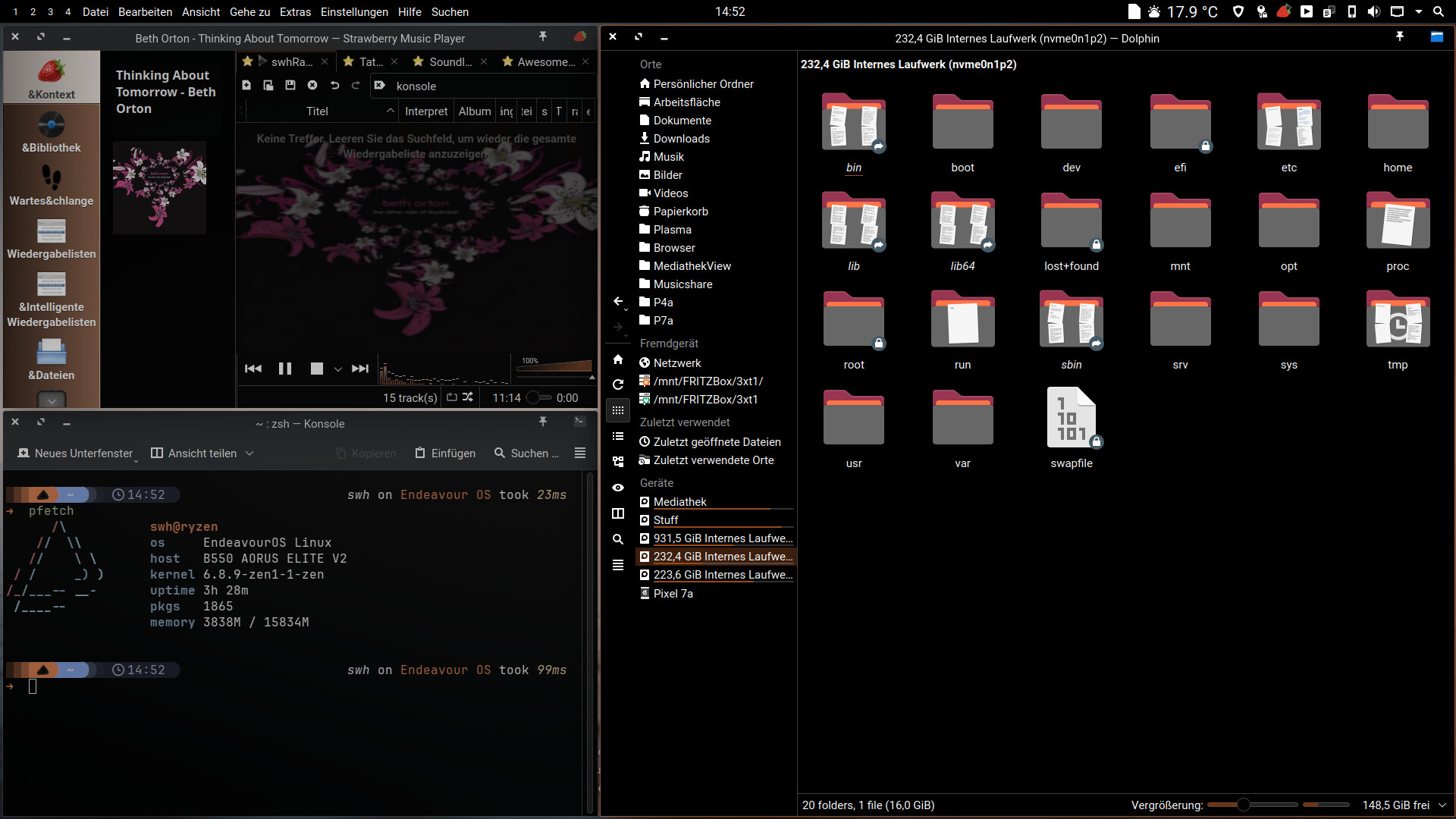 Very vanilla - Breeze and Bing wallapaper of the day, but I much prefer Papirus to the Breeze icons.