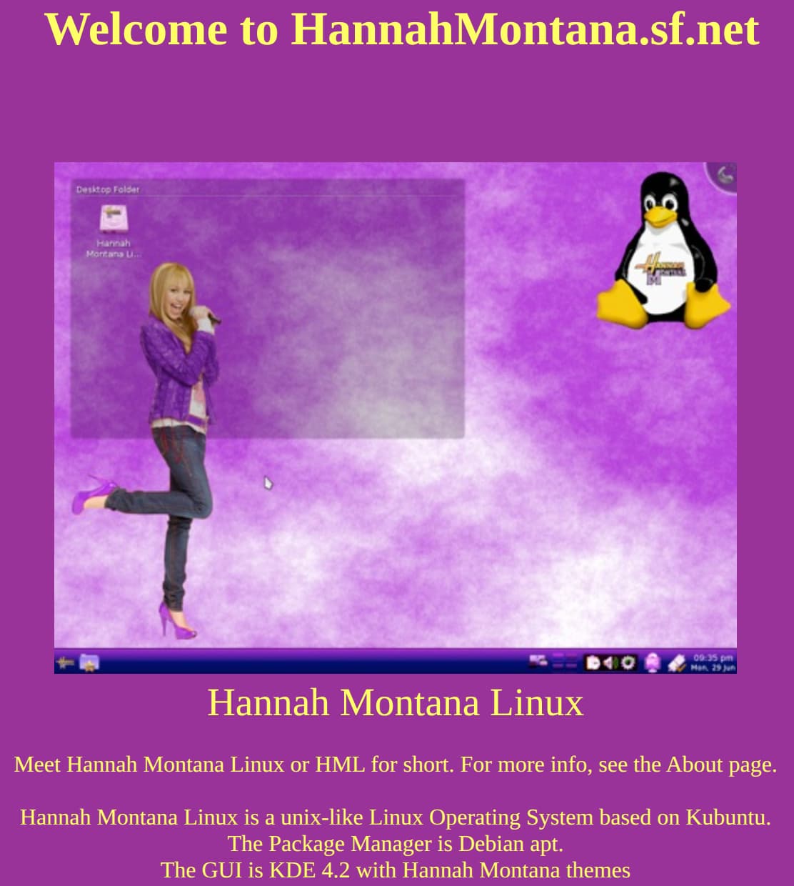 And yes, It is (or at least was) real: https://hannahmontana.sourceforge.net/