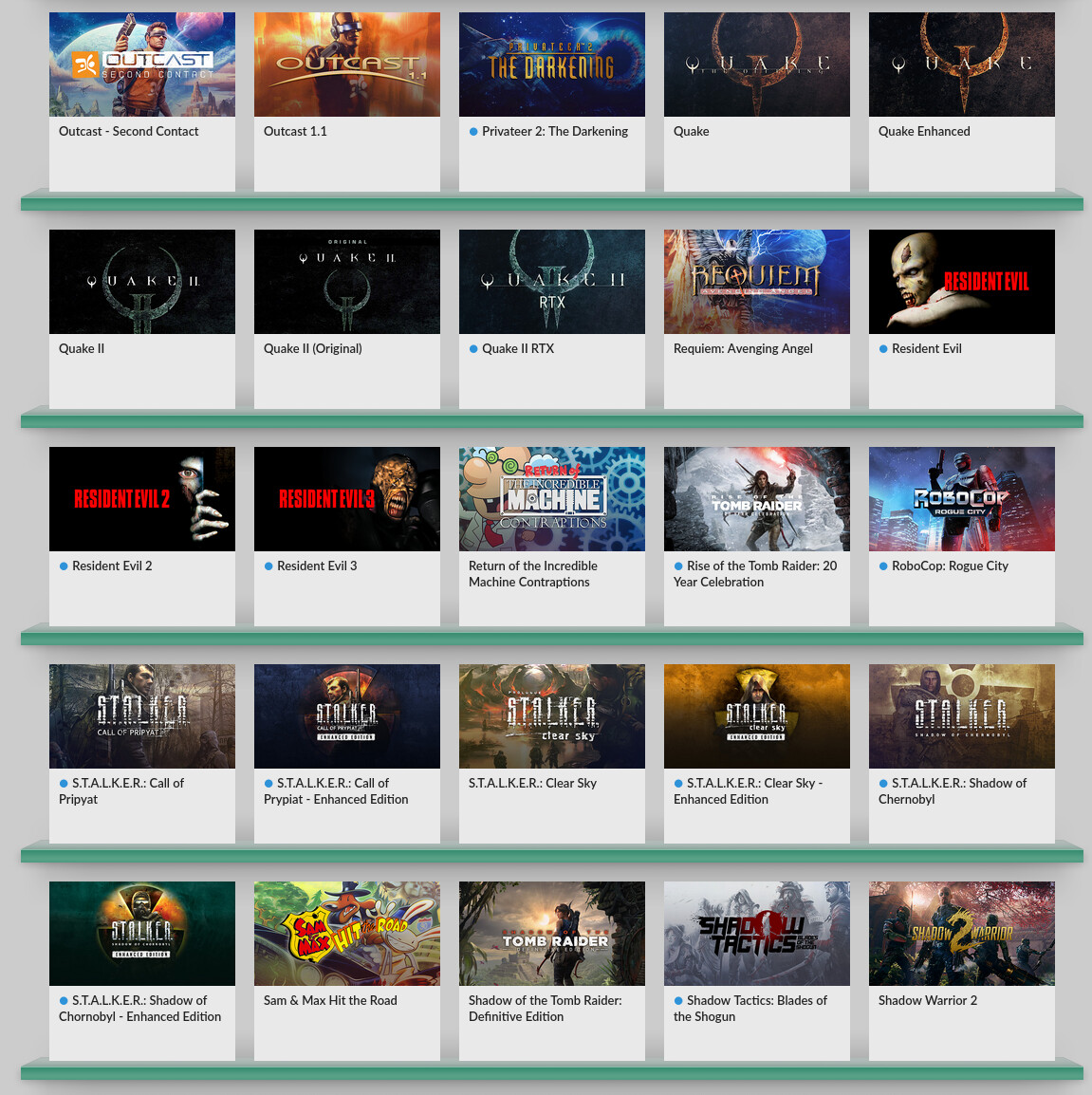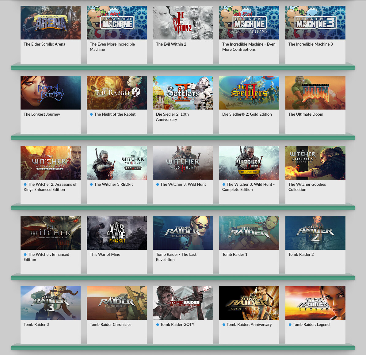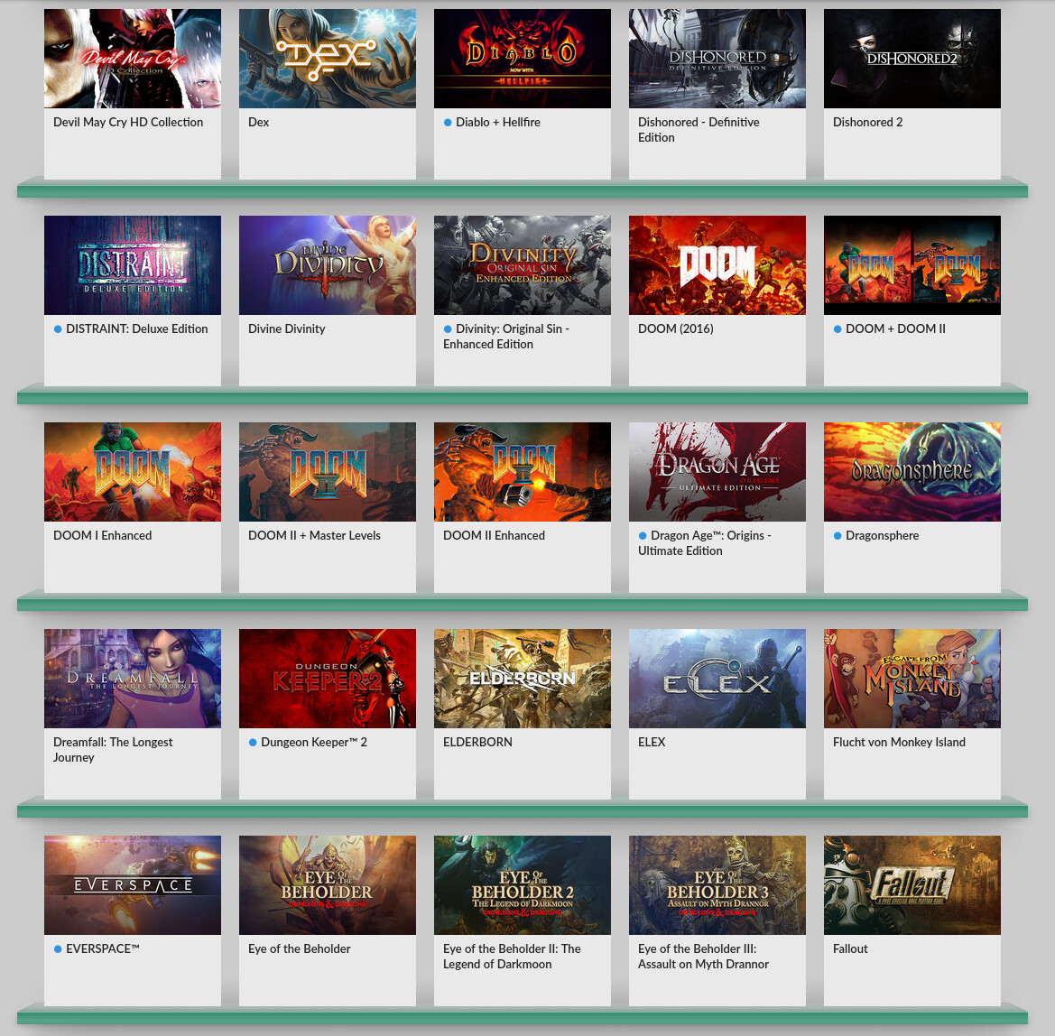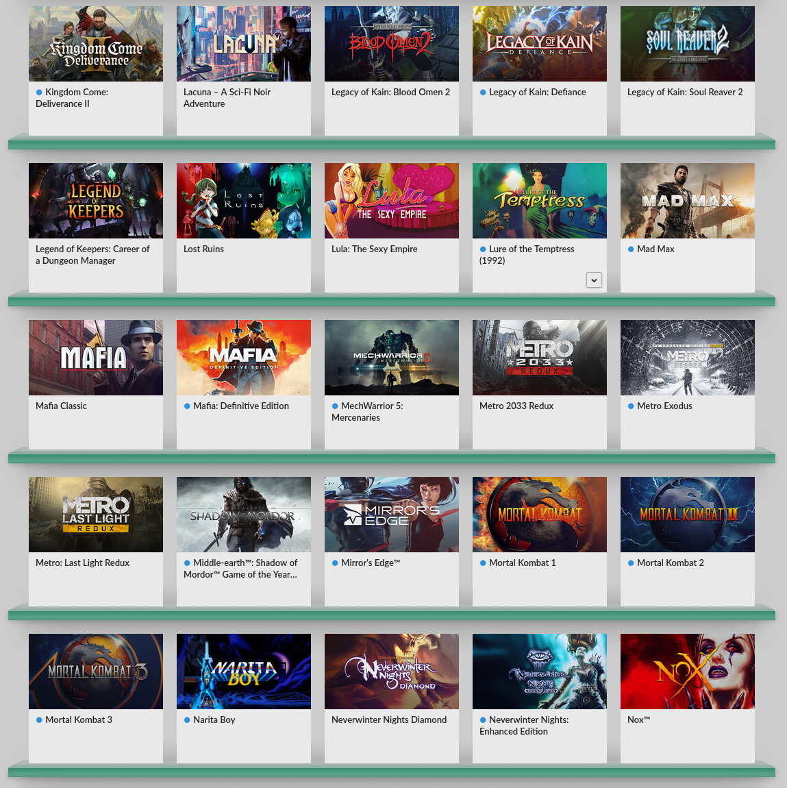 My list of games, not entirely all of them but some I simply haven’t installed on to my system. My preference for buying games is pretty much GOG for everything, only have games on Steam if you can only get them from Steam, some of my Steam games are from long back before I used GOG or the game wasn’t on GOG at the time.