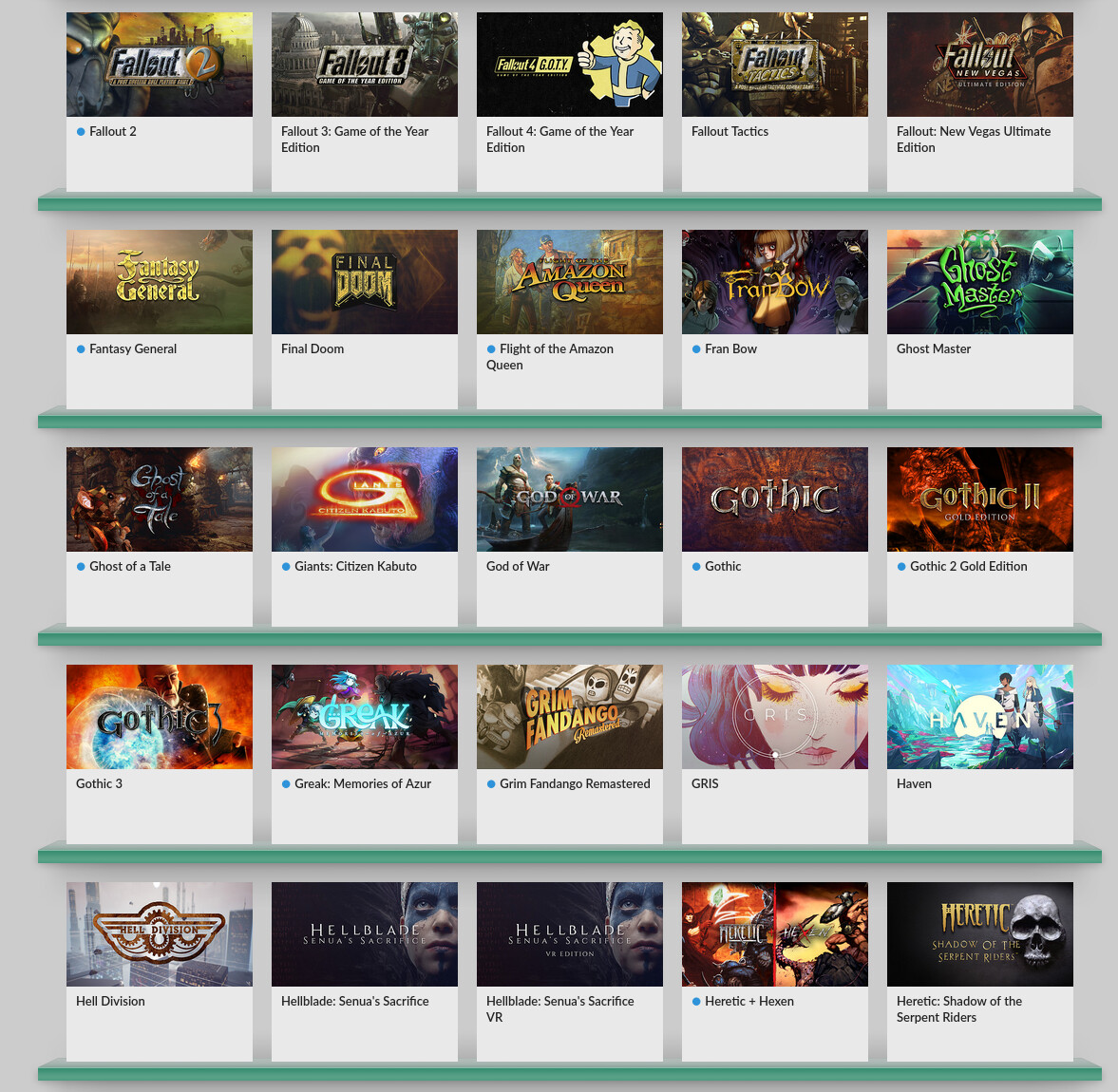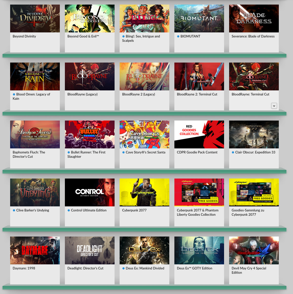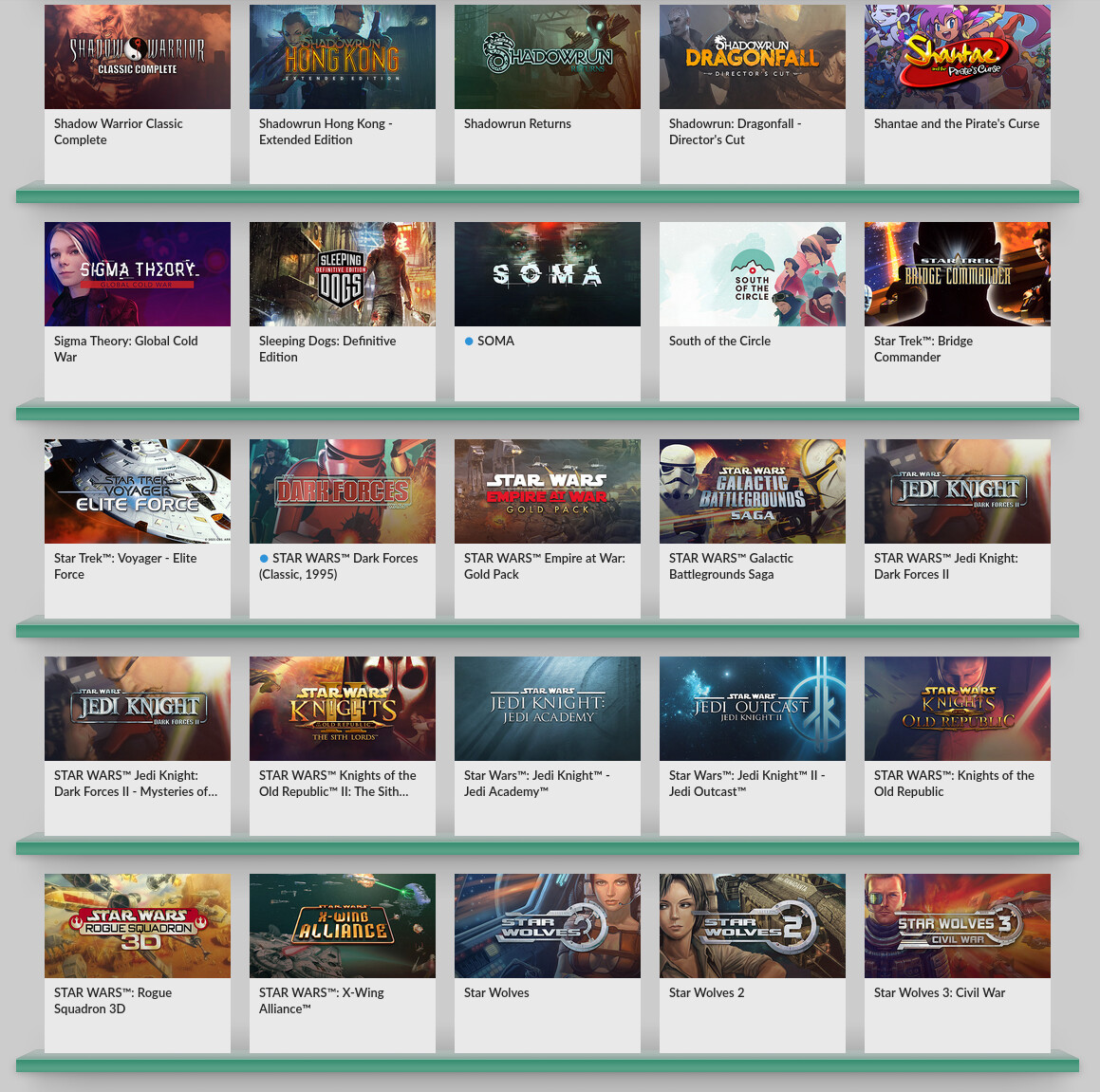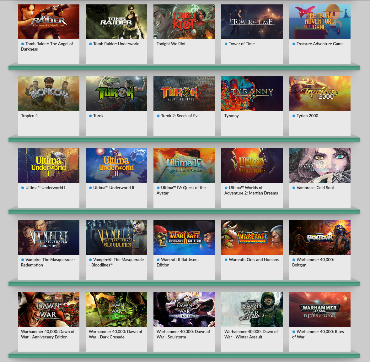 My list of games, not entirely all of them but some I simply haven’t installed on to my system. My preference for buying games is pretty much GOG for everything, only have games on Steam if you can only get them from Steam, some of my Steam games are from long back before I used GOG or the game wasn’t on GOG at the time.