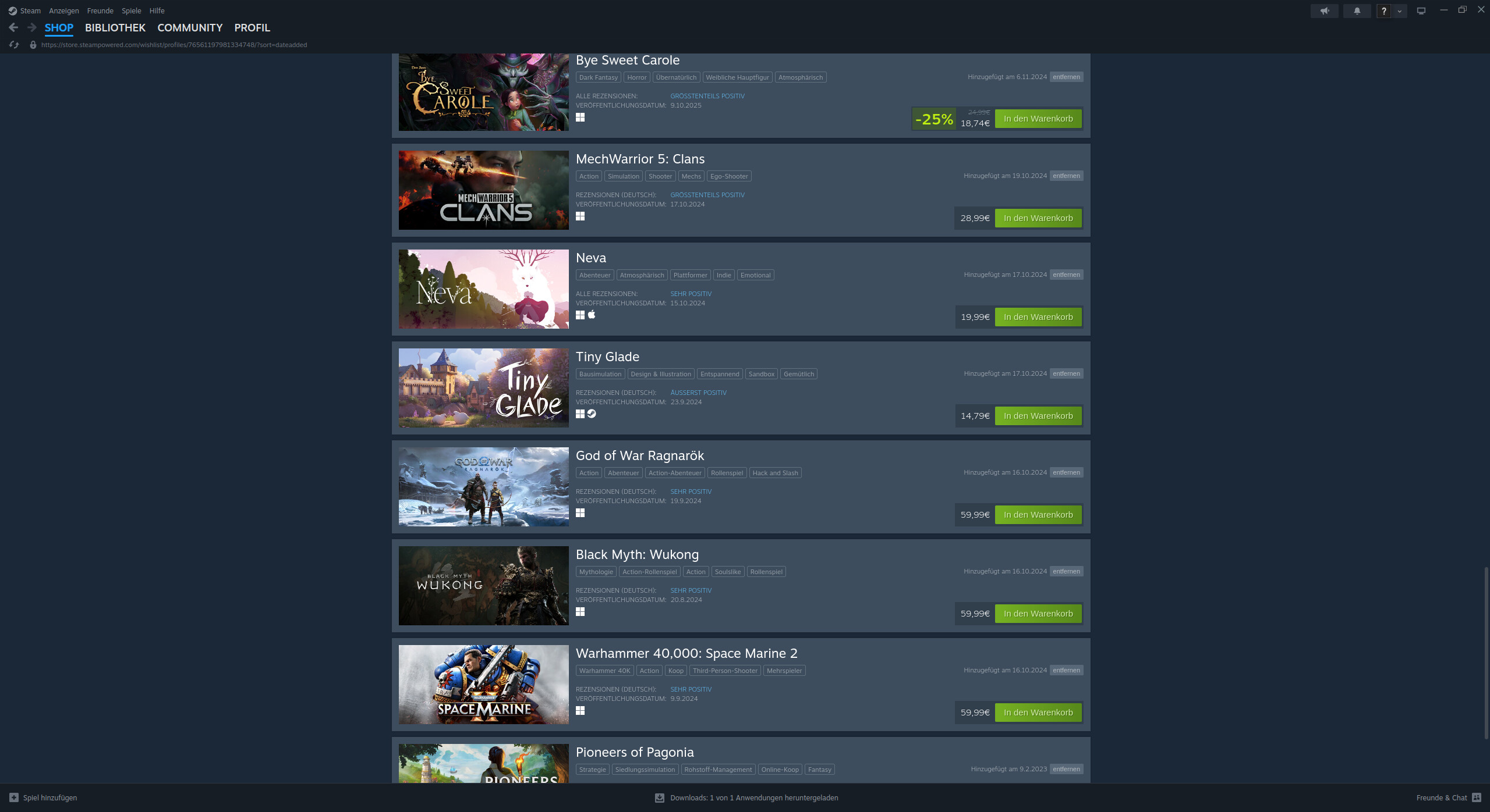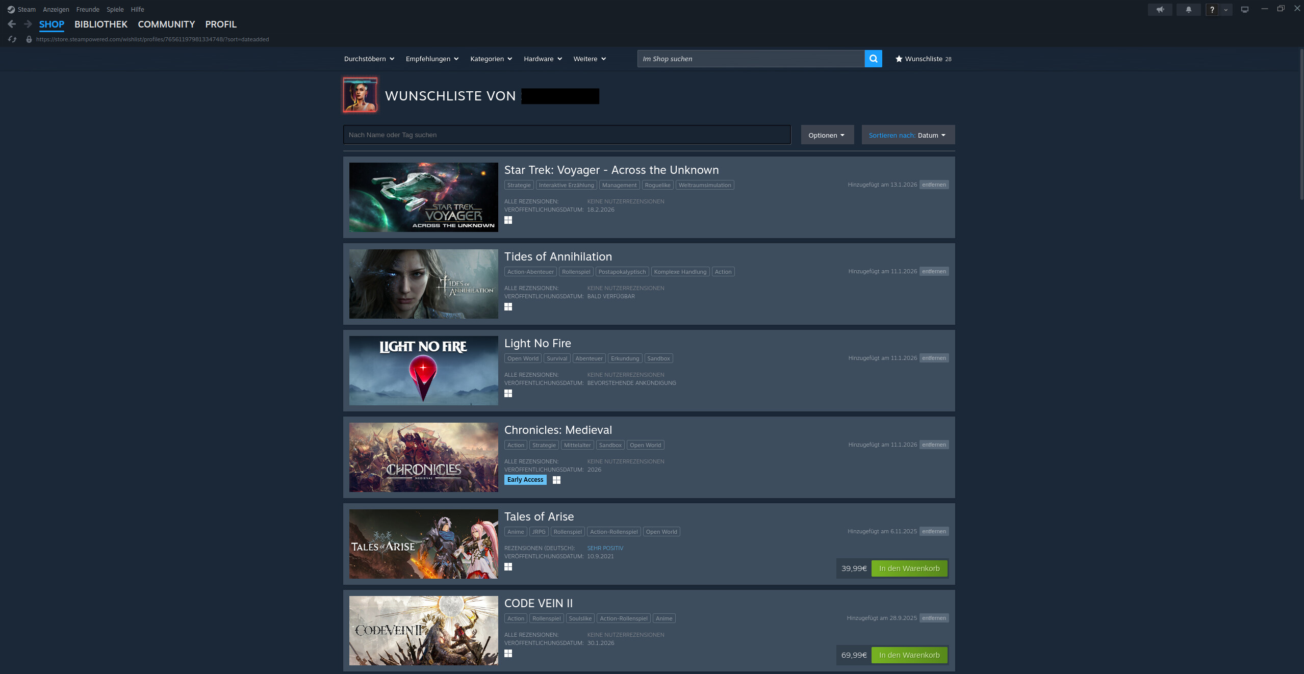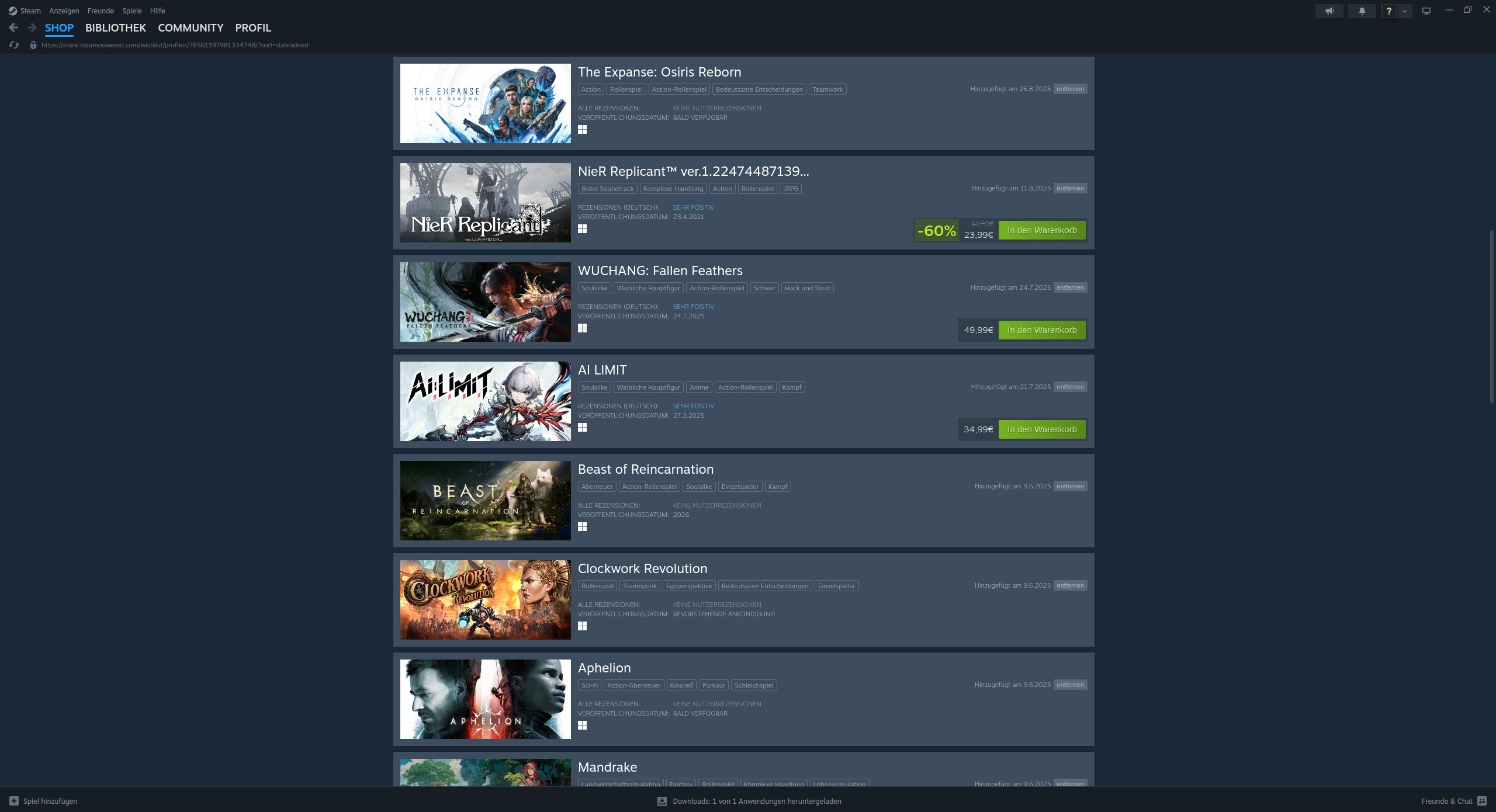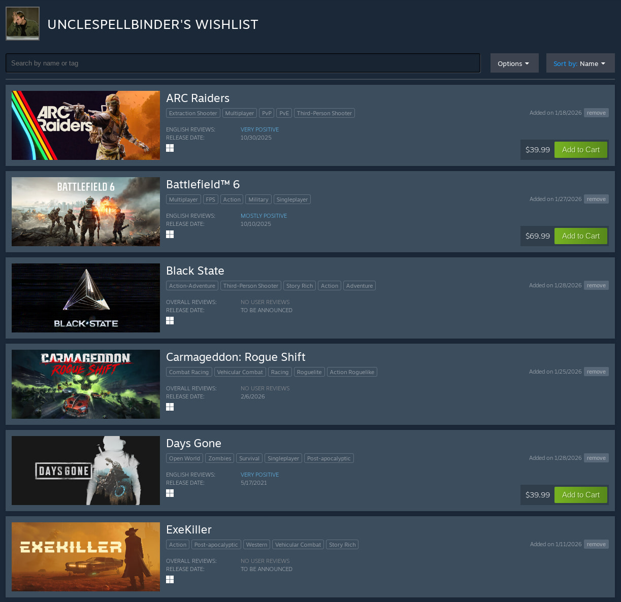 I have only 69 games on Steam, though over the years I know I’ve removed around 20 free games that I’m no longer interested in. As for my wishlist, it’s currently at 173, down from close to 300 in 2023/4 when I decided to remove some that I know I’d never get around to playing, even if I got rich and had all the time in the world.
