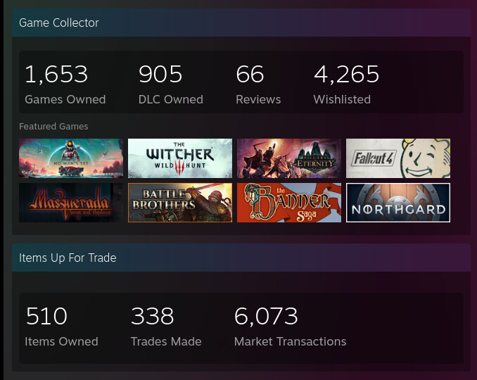 First of all, I have to say that I hardly ever buy games on Steam anymore. I usually do that on GoG (I have about 293 “things” there). On Steam, I have 187.