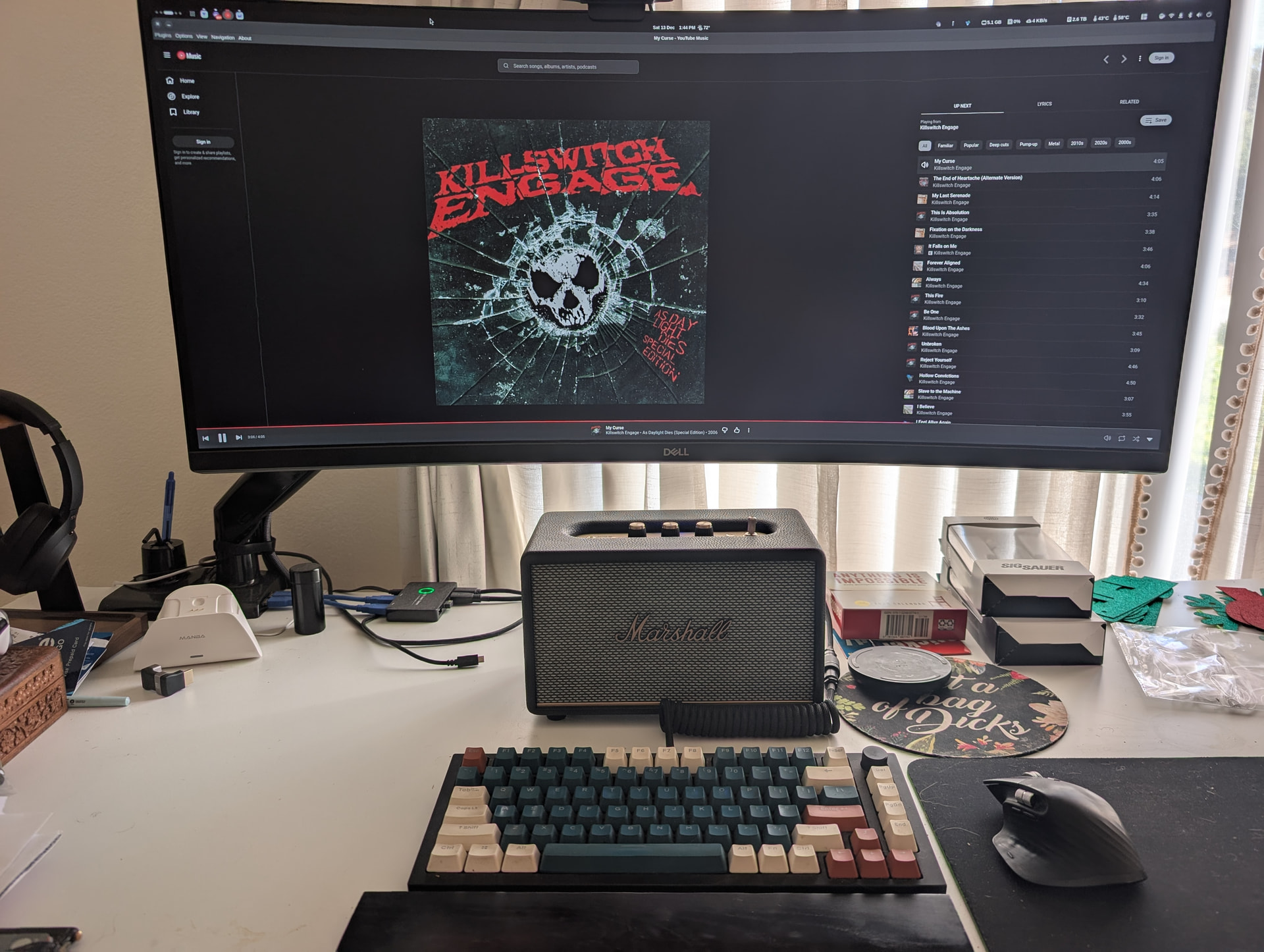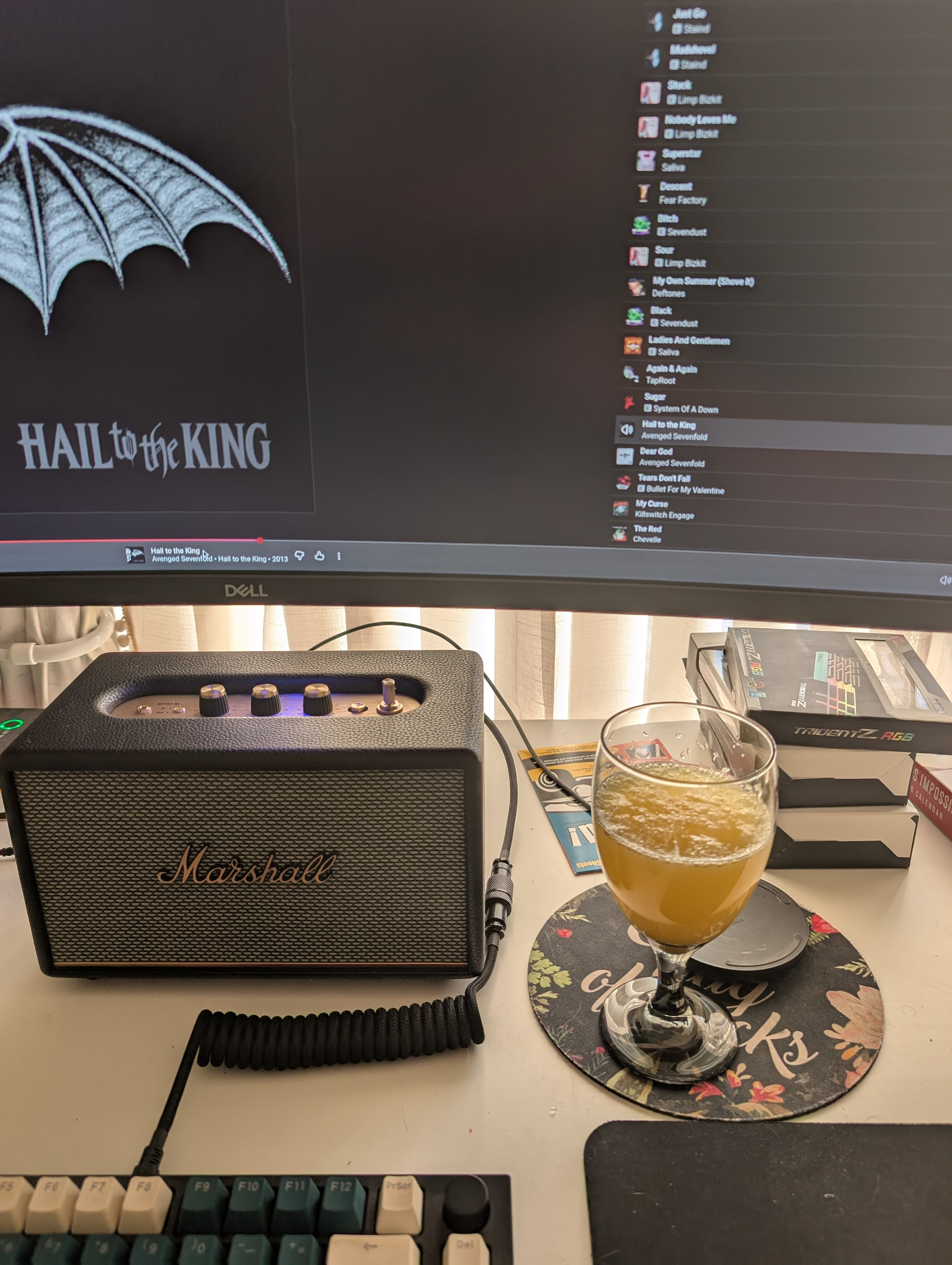 One of the last three pieces to my complete desktop setup. What sound. I’d have paid double for this Marshall speaker. Acton III. I absolutely love music and this just fills the house.