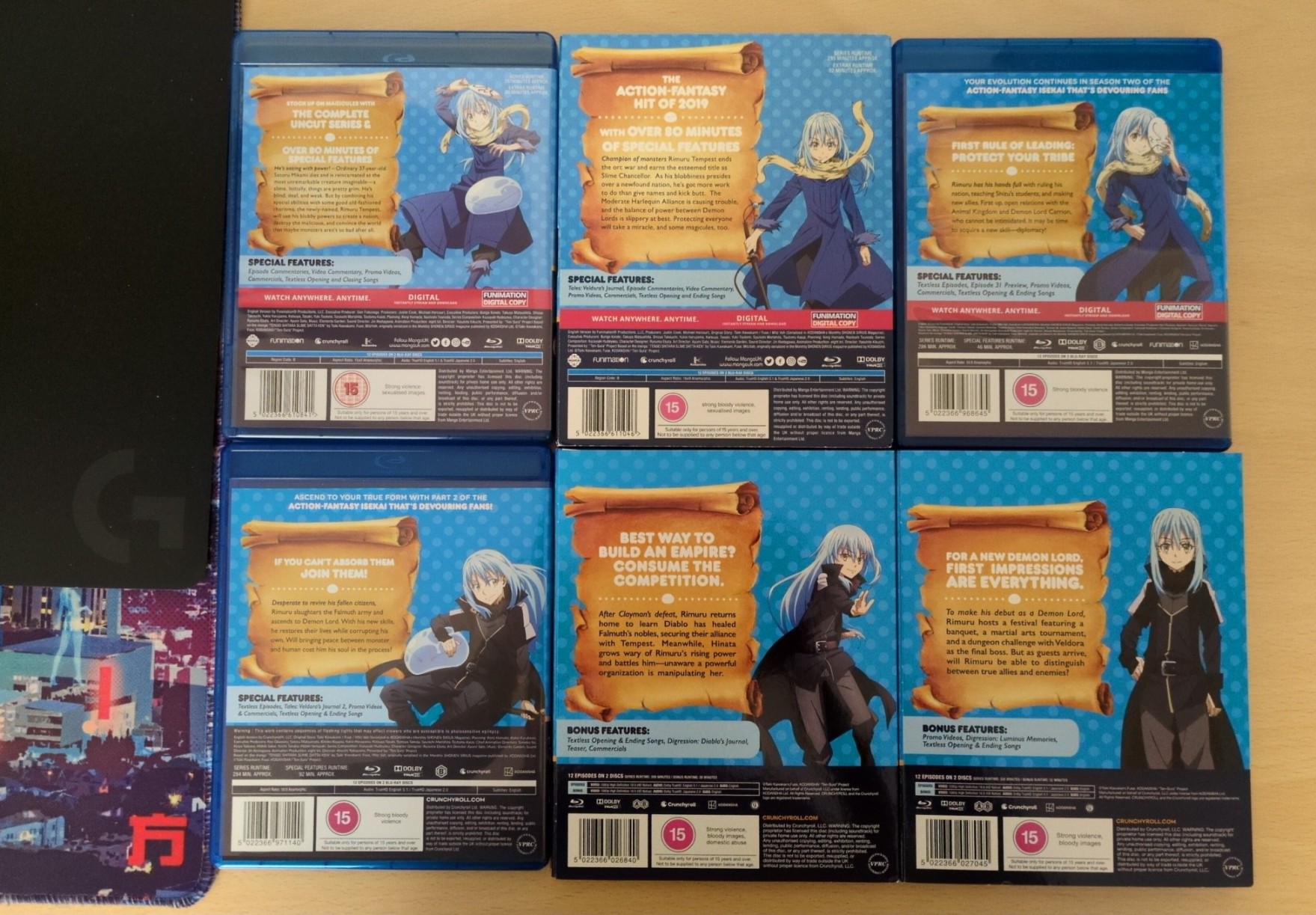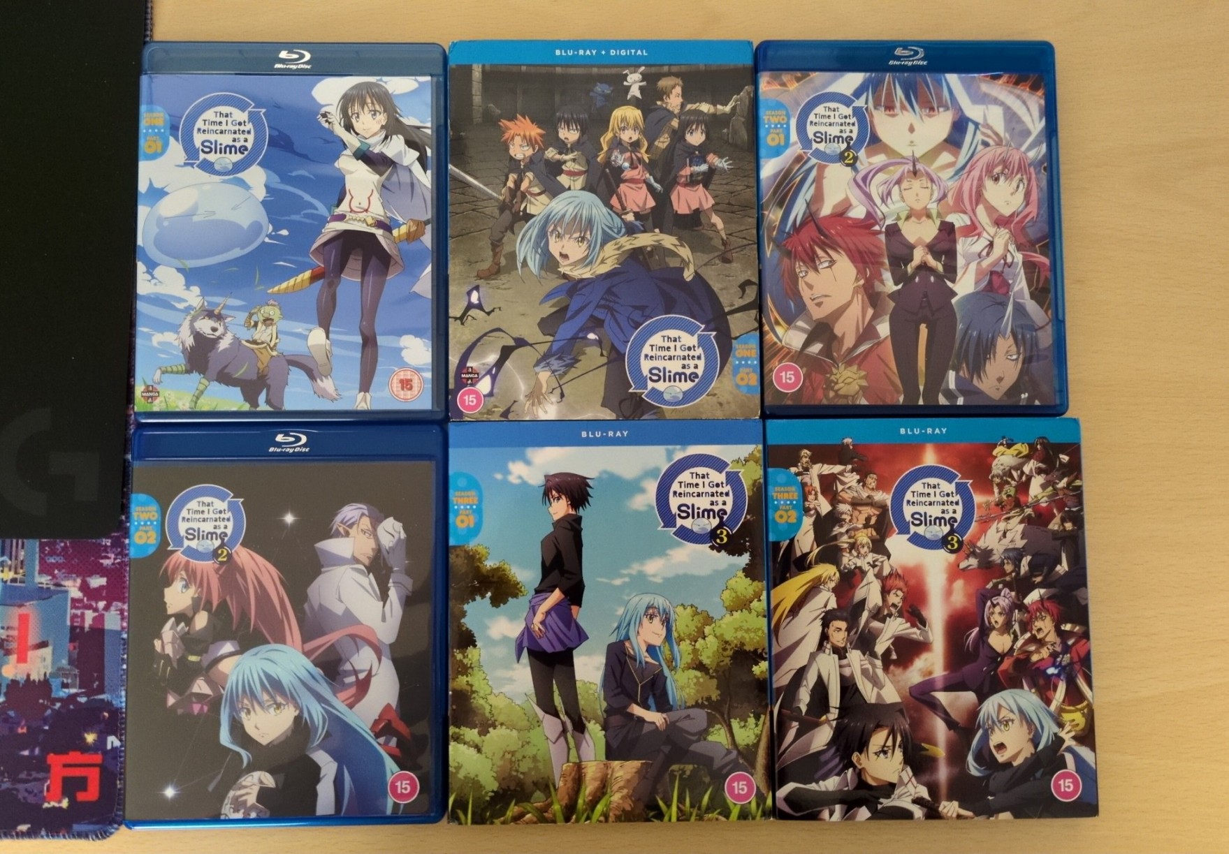 Over the last three days, I have received more anime from the UK. This time, it’s seasons 1-3 (part 1+2) of That Time I Got Reincarnated as a Slime, the Slime Diaries and the movie Scarlet Bond.
