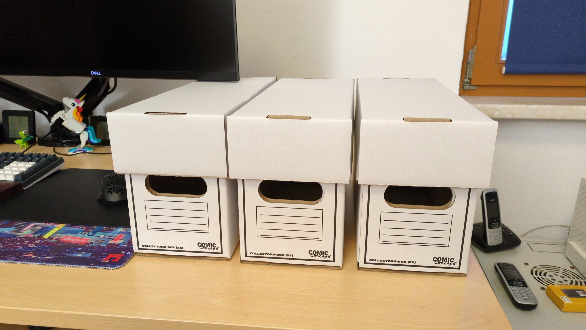 They arrived in the mail today. They are small boxes where you can store manga (or something of that size).