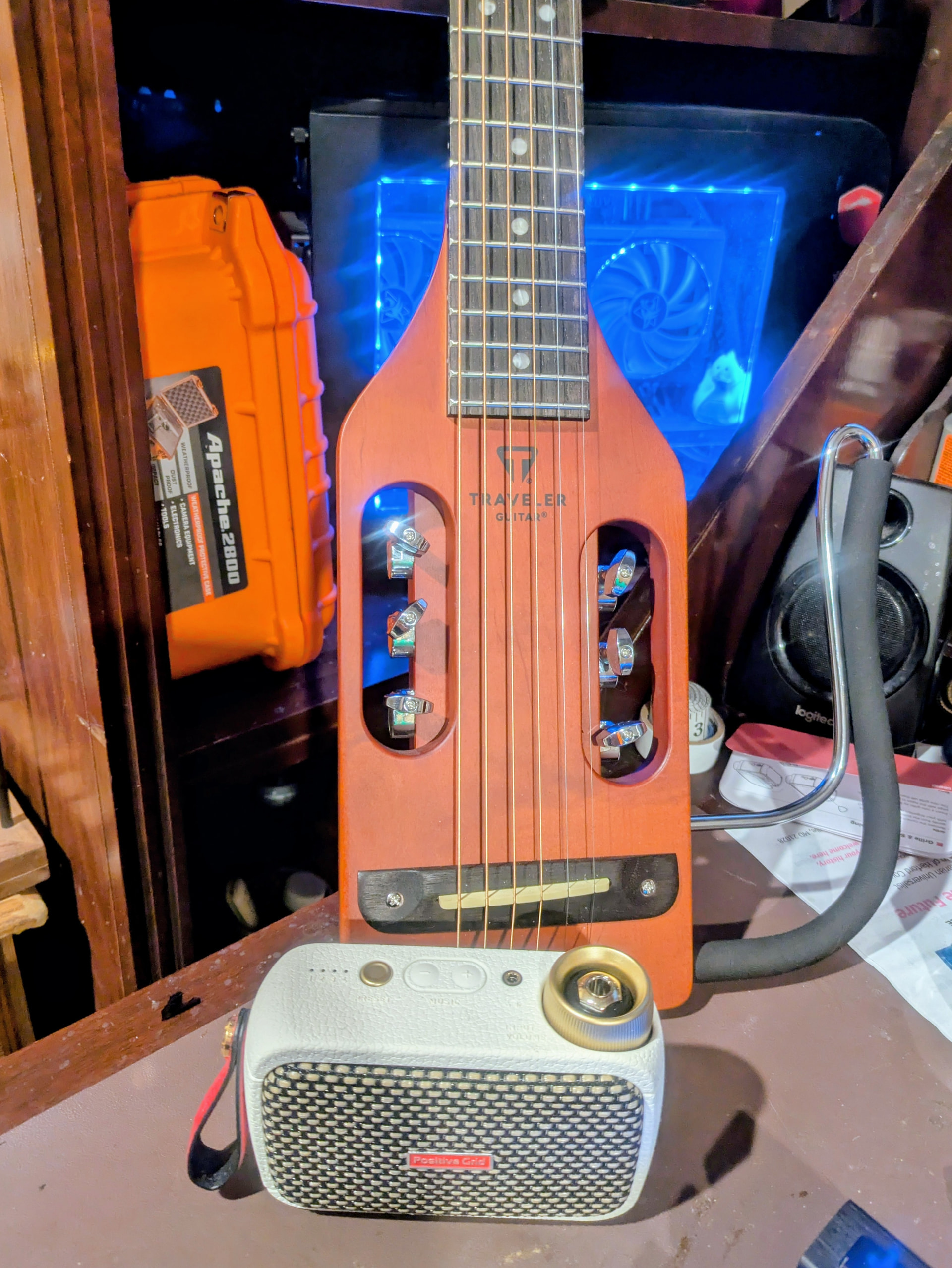 Early birthday present for myself. Traveler Ultra-Light Acoustical travel guitar and teeny little Spark Go amplifier.