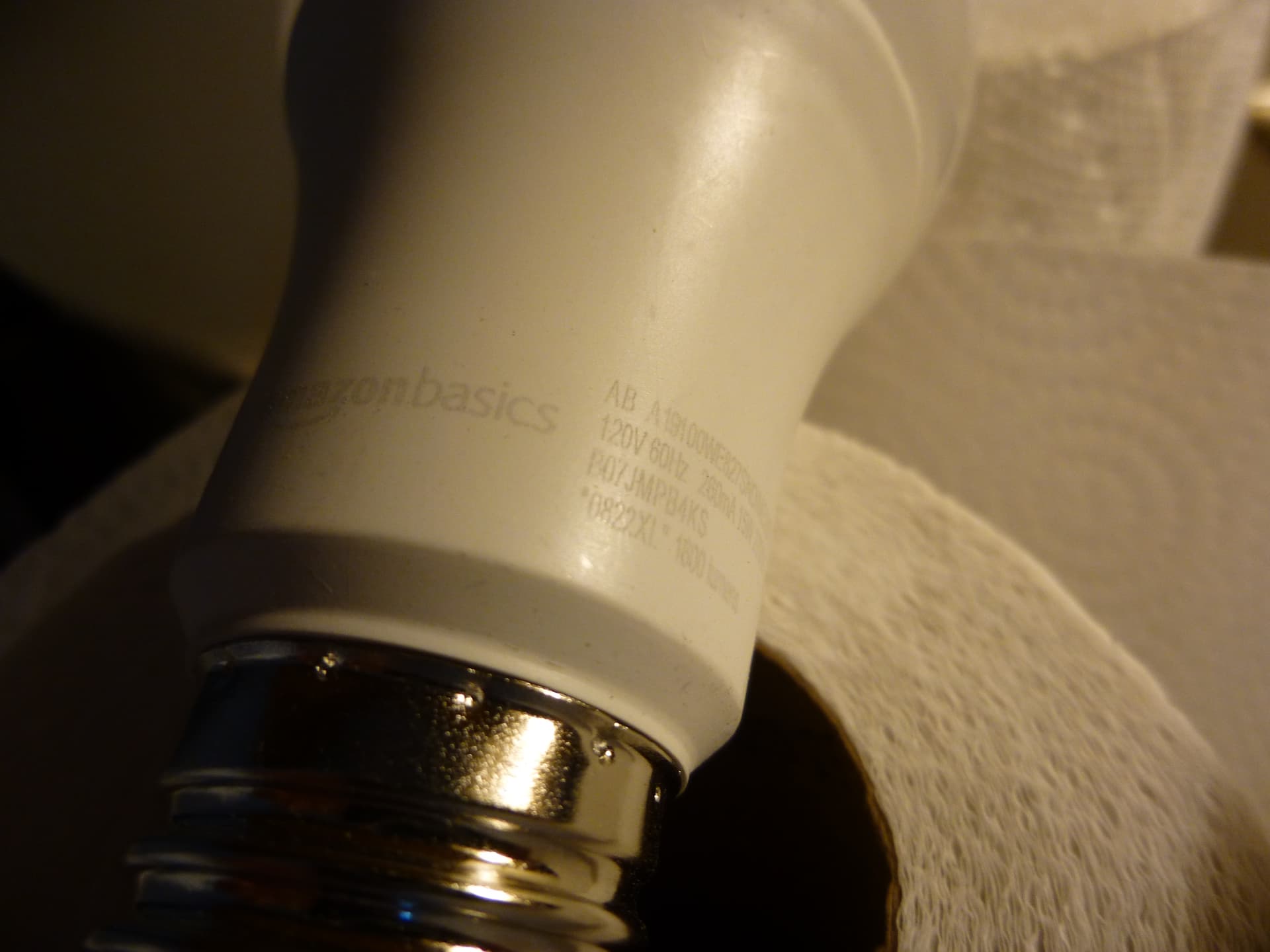 For context, the photo of the lights on is not to show I bought the ceiling fan but to show the light bulbs in the following photo in action. I like them a lot so much that I thought I’d show them on. Temp is 2700k and they’re 100w equivalent. Had some 60 watt eq. of the same brand but they just weren’t bright enough.