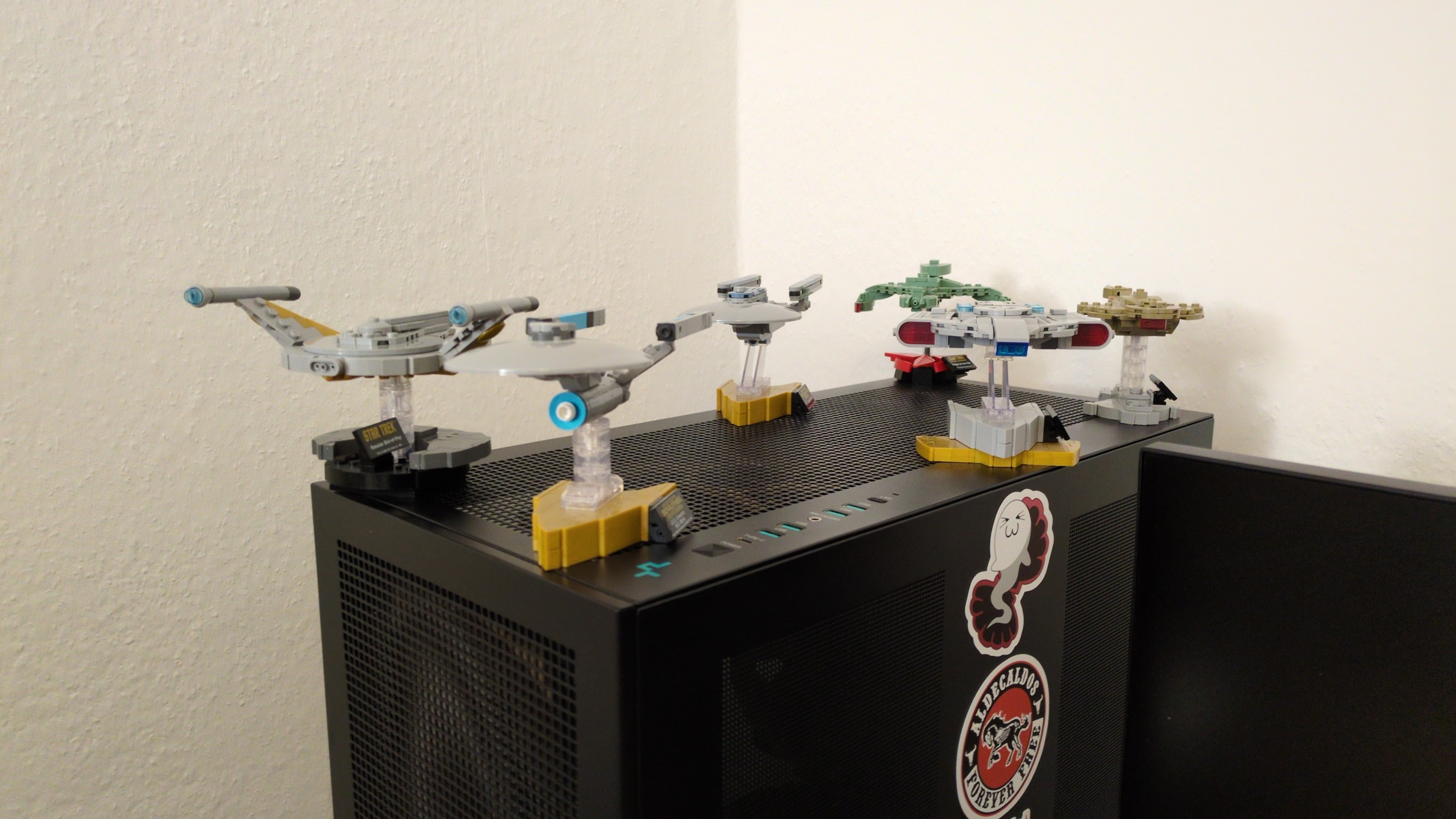 A quick update on this post. Unfortunately, the Bird of Prey is a little too heavy (sadly) for my case, so I decided to go with a small fleet consisting of one Romulan, one Klingon, one Cardassian, and three Federation starships.