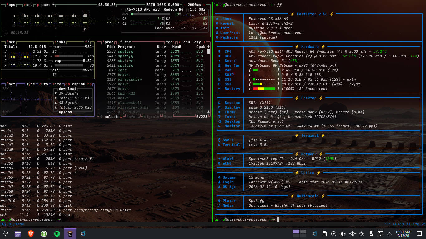 Howdy folks. Been alittle while, but just reinstalled EndeavourOS … I’ve missed it. Between all the distros I’ve tried, and some are real keepers that deserve a partition spot, always in the back of my mind of how much I enjoyed Endeavour. So easy to use and super responsive on this 10 year old laptop.