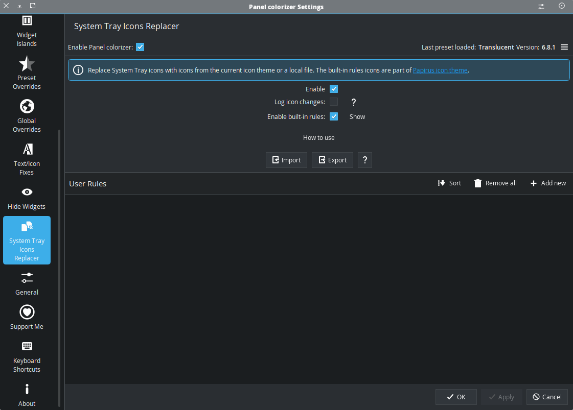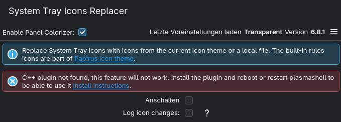 I went to GitHub, but I couldn’t find out how to install this plugin. Looks like I have to install Panel Colorizer manually … Is there any chance that there is an easier way to install this plugin? I installed Panel Colorizer from KDE extension settings.