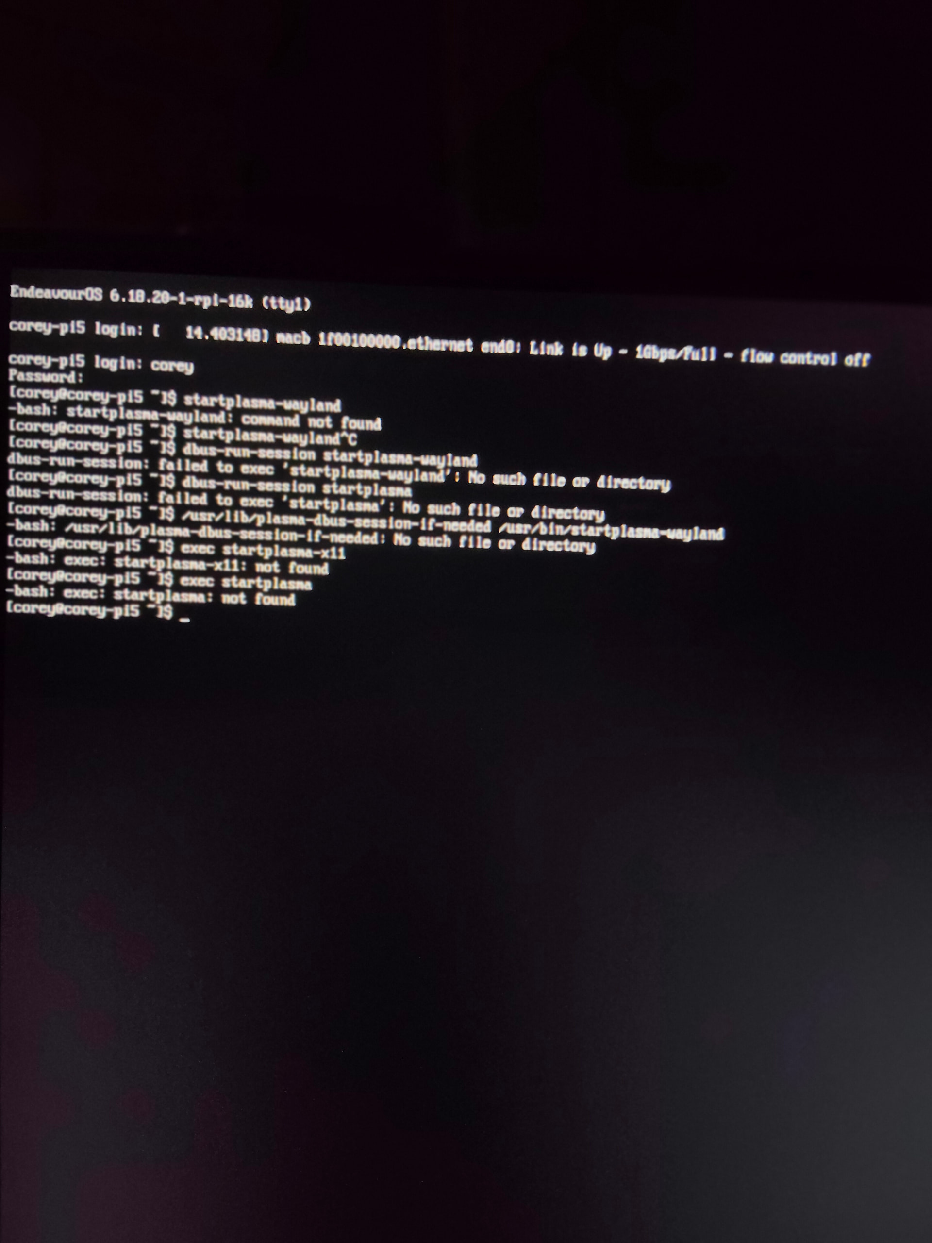 also I chose KDE and I pressed enter to restart, when it restarted it dropped me into the terminal instead of auto starting the KDE deksop so I tried to run the KDE session but didn’t work. I even tried what was on the arch wiki and it didn’t work for me. I assume since it would be the latest KDE it will only be wayland also with the changes that have happened separating x11