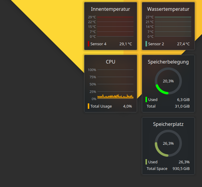 Hey, i recently set up some widgets with hardware sensors for water temperature and air temperature inside the pc case.