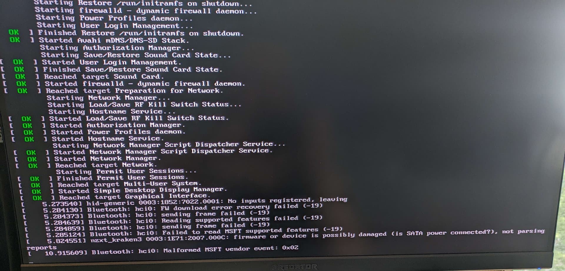 Note: I rebooted my system once after seeing this in hopes it was a fluke. The first time this happened it stopped at the line about the NZXT kraken. I am unable to get past this screen. Any help or info is appreciated!