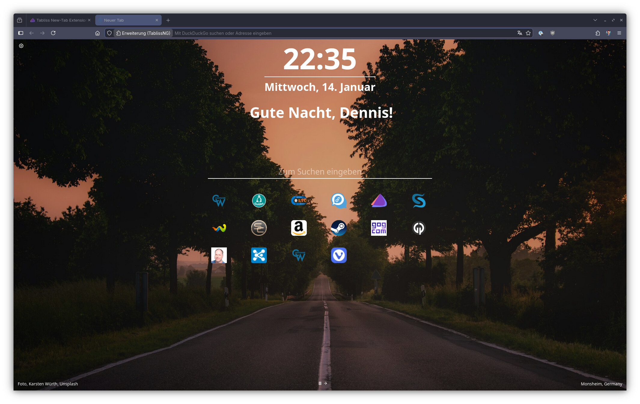 Back to Firefox, yesterday and I installed TablissNG. Played a bit with the settings and that’s the latest result.
