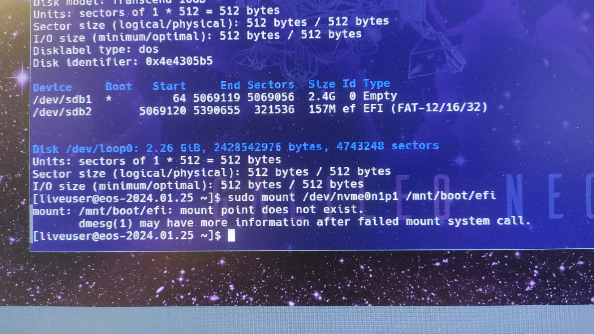 sudo mount /dev/nvme0n1p1 /mnt/boot/efi