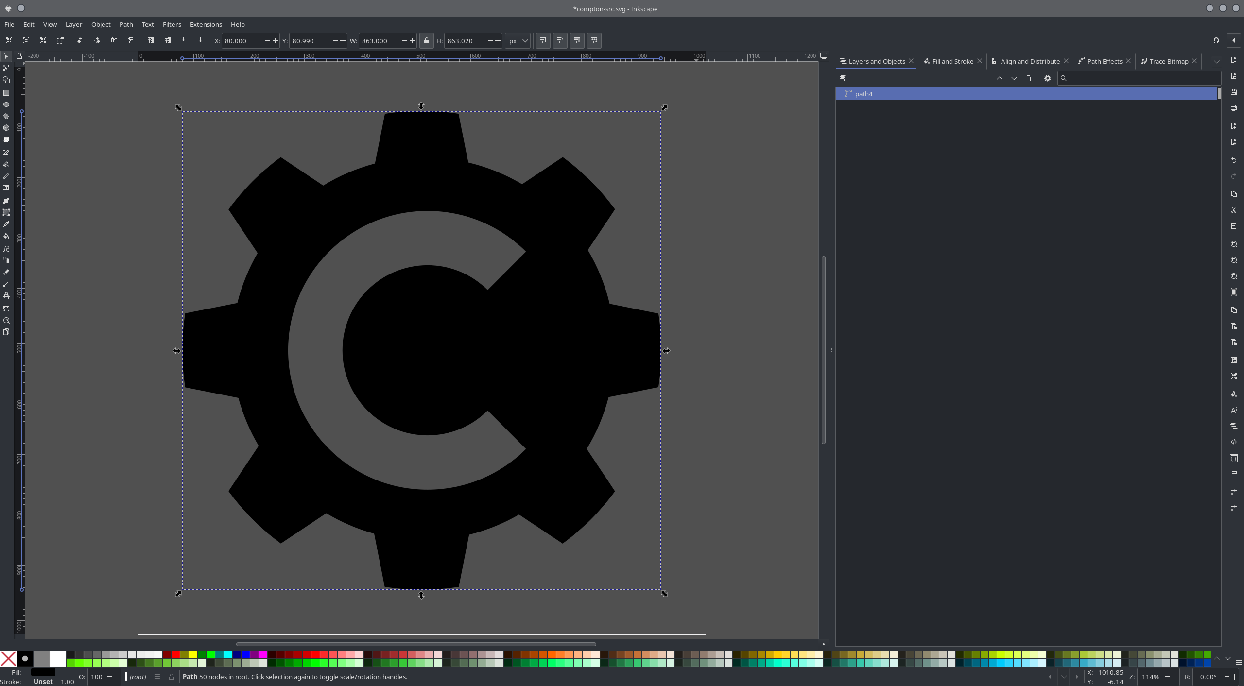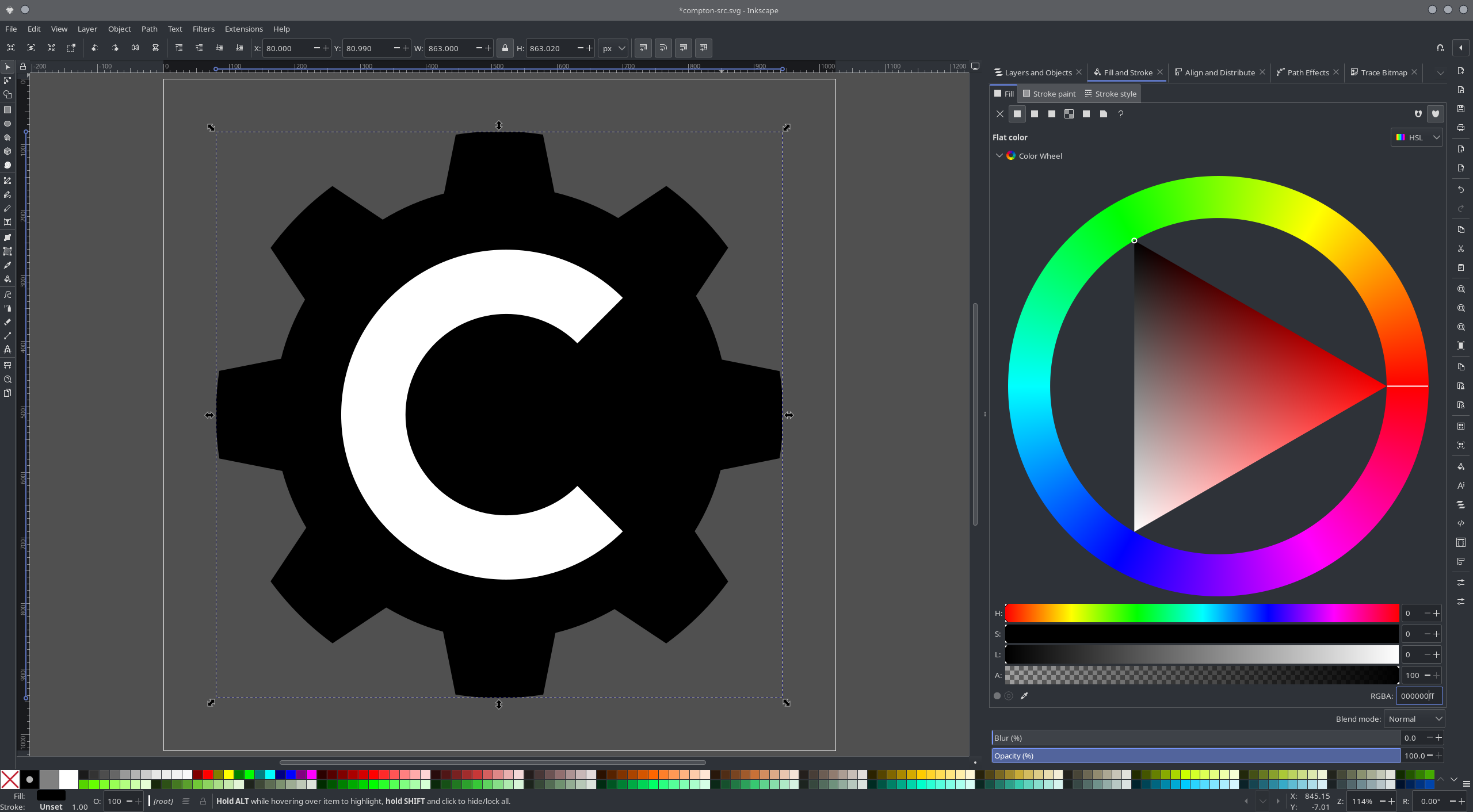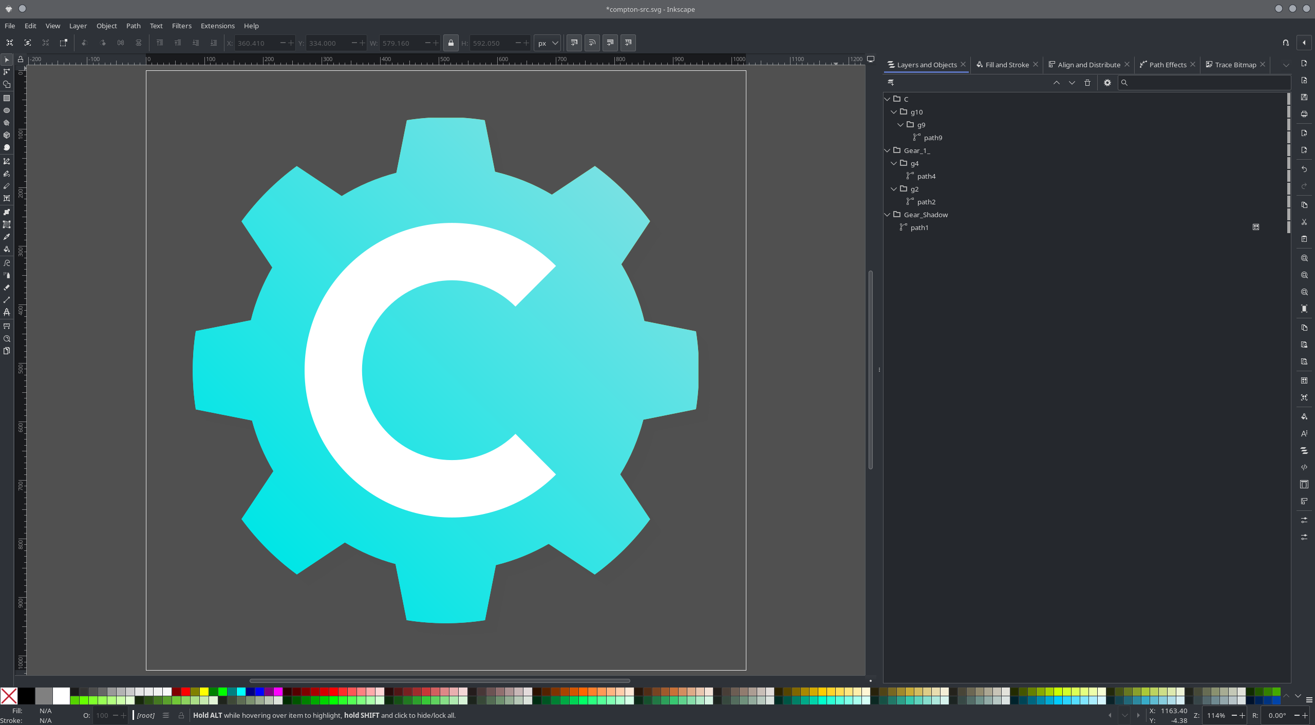 To make the icon truly monochrome, I needed to cut out the ‘C’ from the gear shape.
