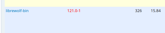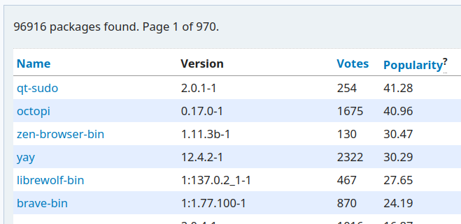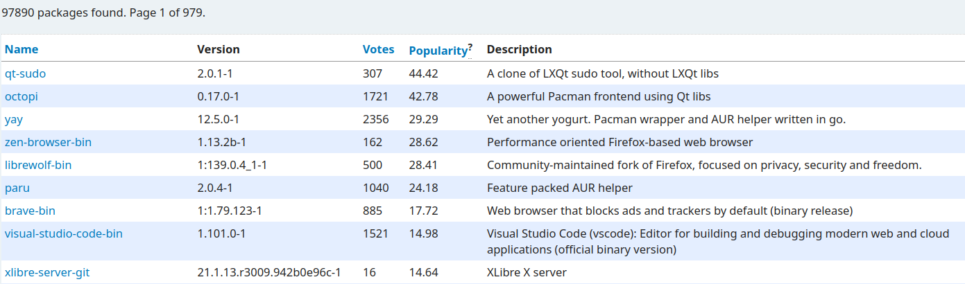 libreoffice is in the repos so the version most people install won’t be in a top AUR list.