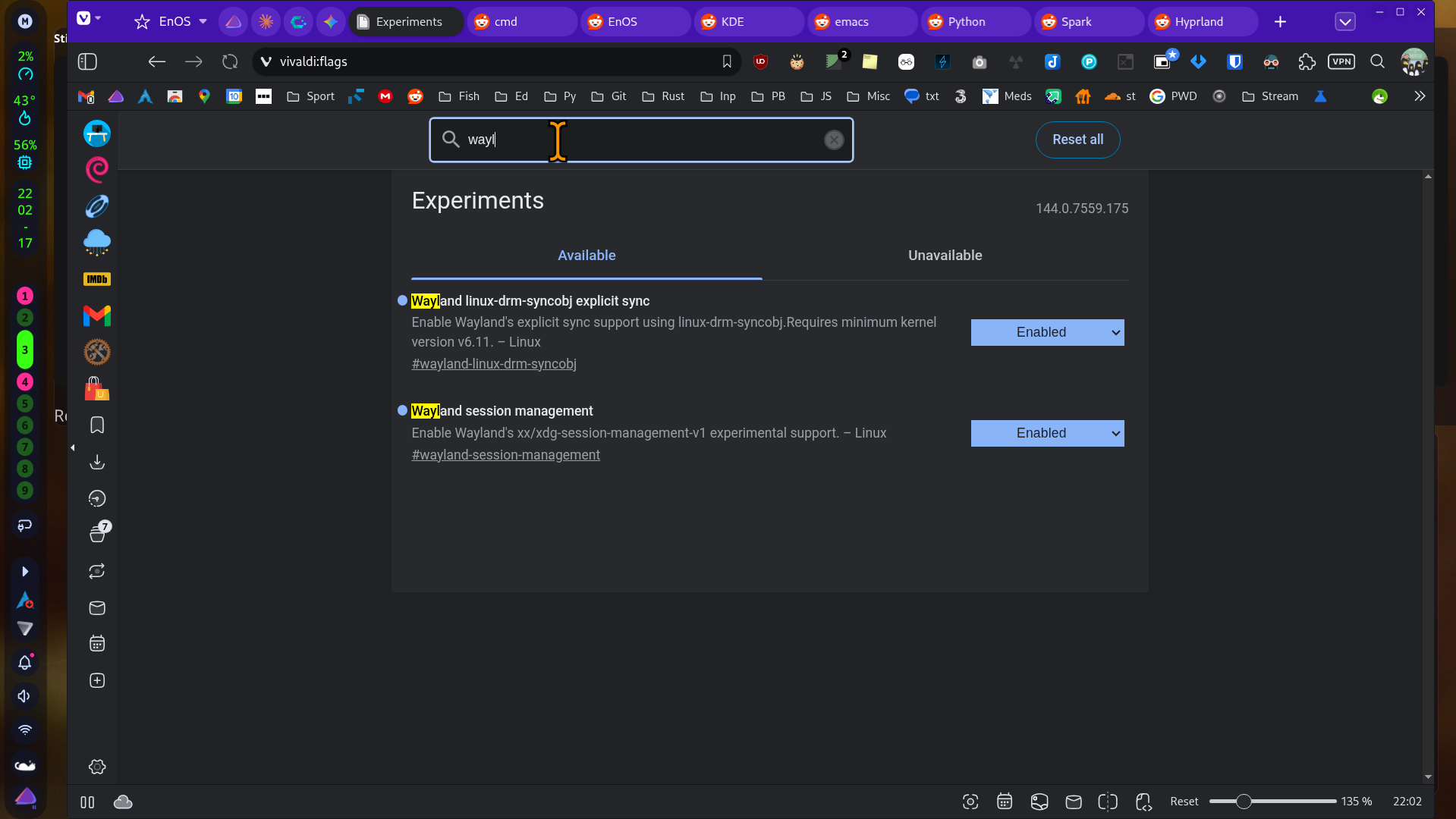 Updated vivaldi on 2026-02-14, rebooted this morning. When I ran some of my Vivaldi apps, I was greeted with strangeness in the window management. It turns out that my window rules (which use Wayland class name) weren’t working because all of my Vivaldi windows were defaulting to Xwayland.