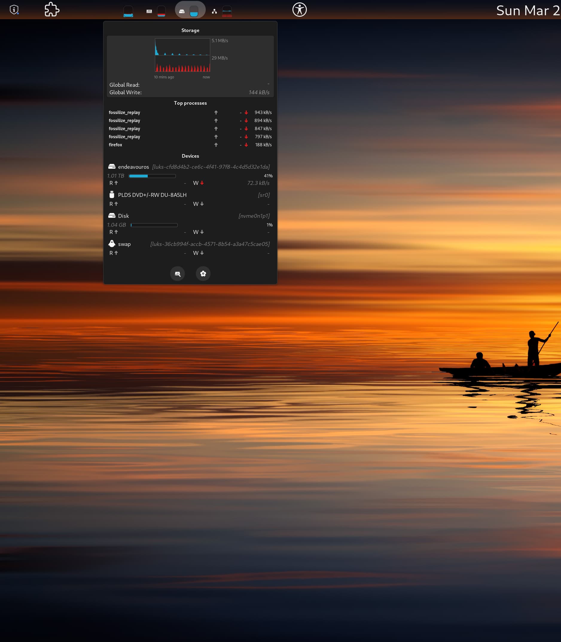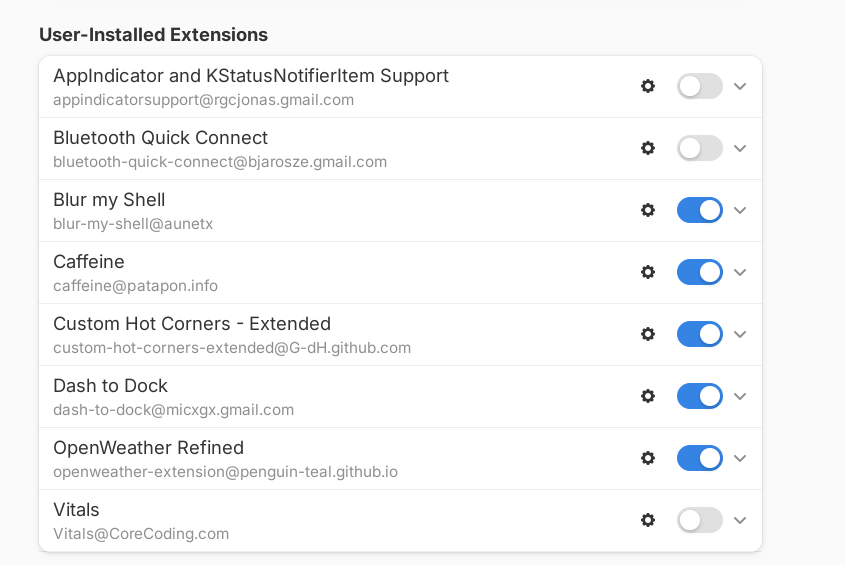 I updated EOS today, and it updated to Gnome 46.0. That explains why my extensions went bonkers. Most are DOA now. Fortunately Dash to Panel still works, and I found a nice system monitor for the top panel though. Mouse-over the icons on panel, and drop-downs appear.