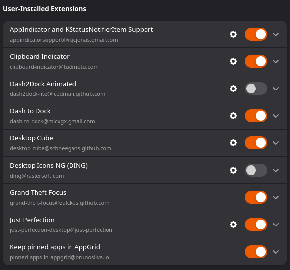 Looking for all the awesome extension you use and… i think i’m weird cause vanilla Gnome is my way to go. Already purging all the EOS styling (awesome work btw - looks great) because of vanilla feeling need.