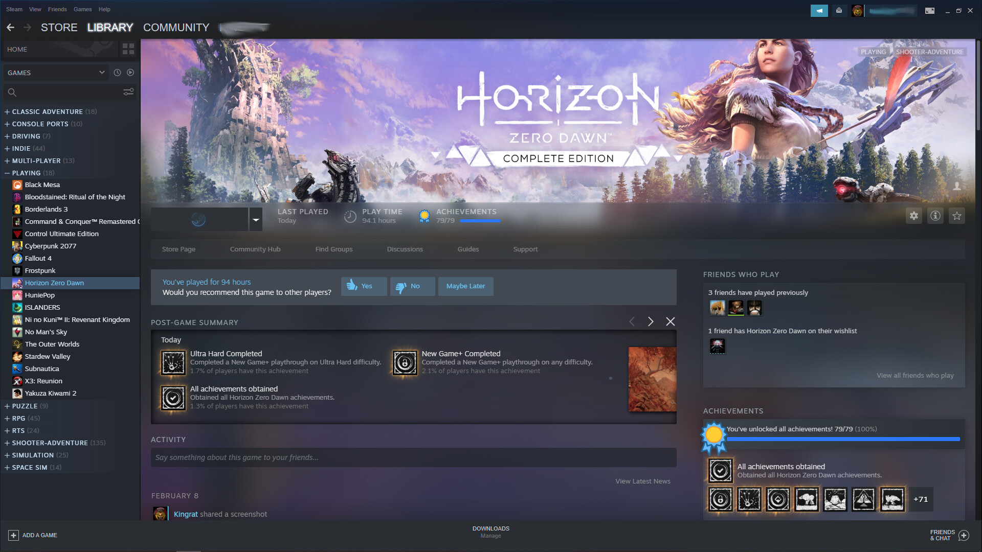I just finished playing Horizon: Zero Dawn on PC. The story was awesome. As with the game Control, I enjoyed it so much, that I did something that I normally do not do. I decided to go for 100% achievements. This game was just great fun!
